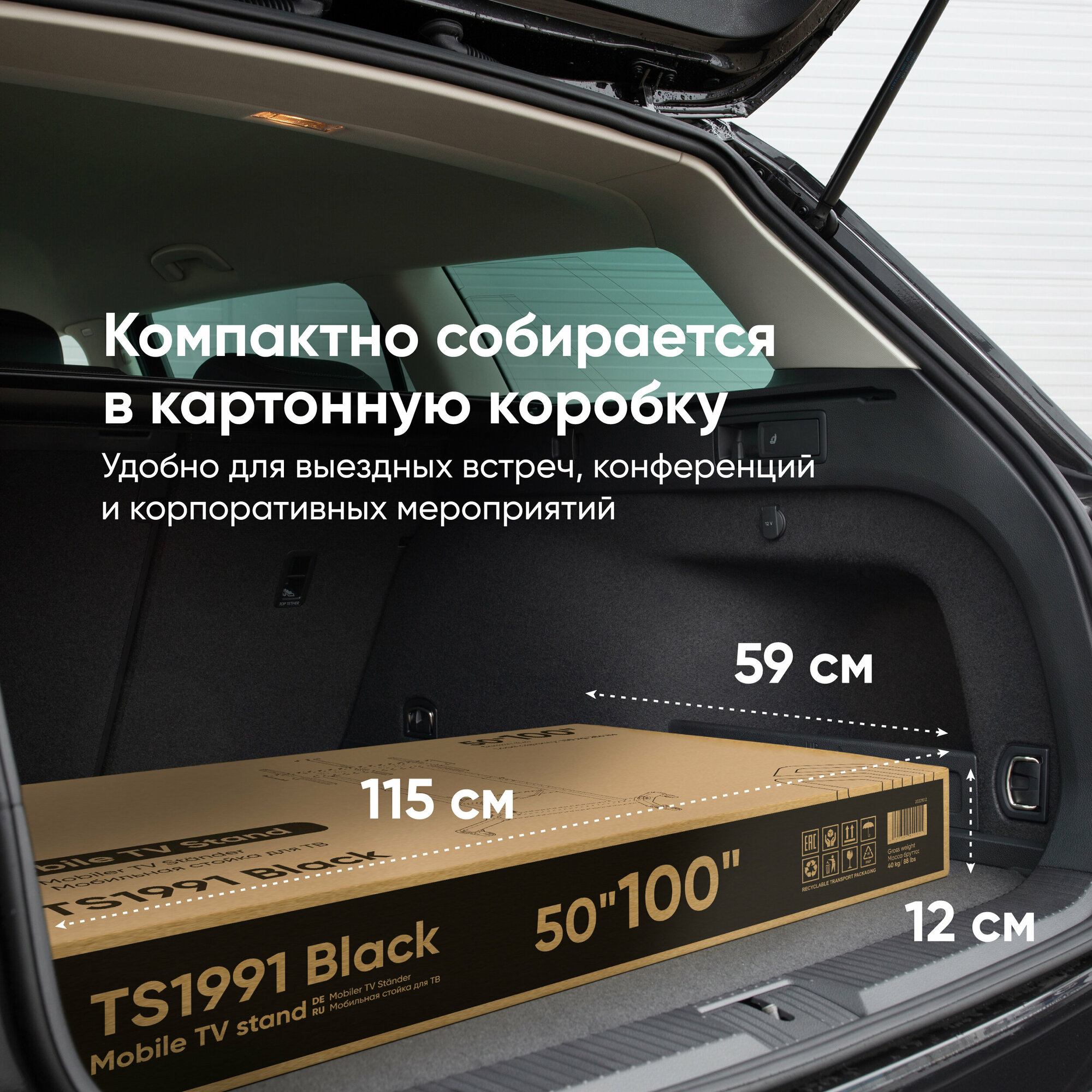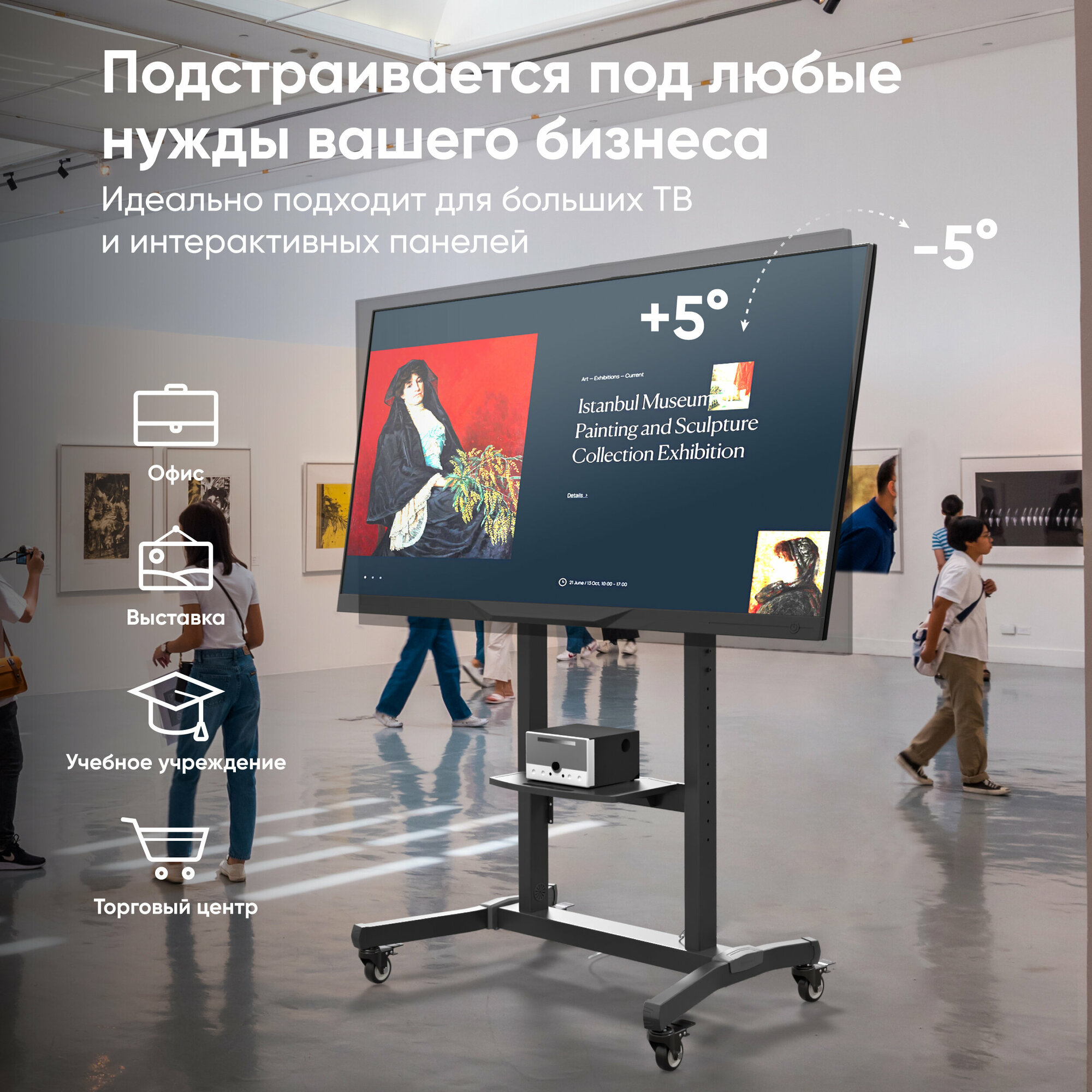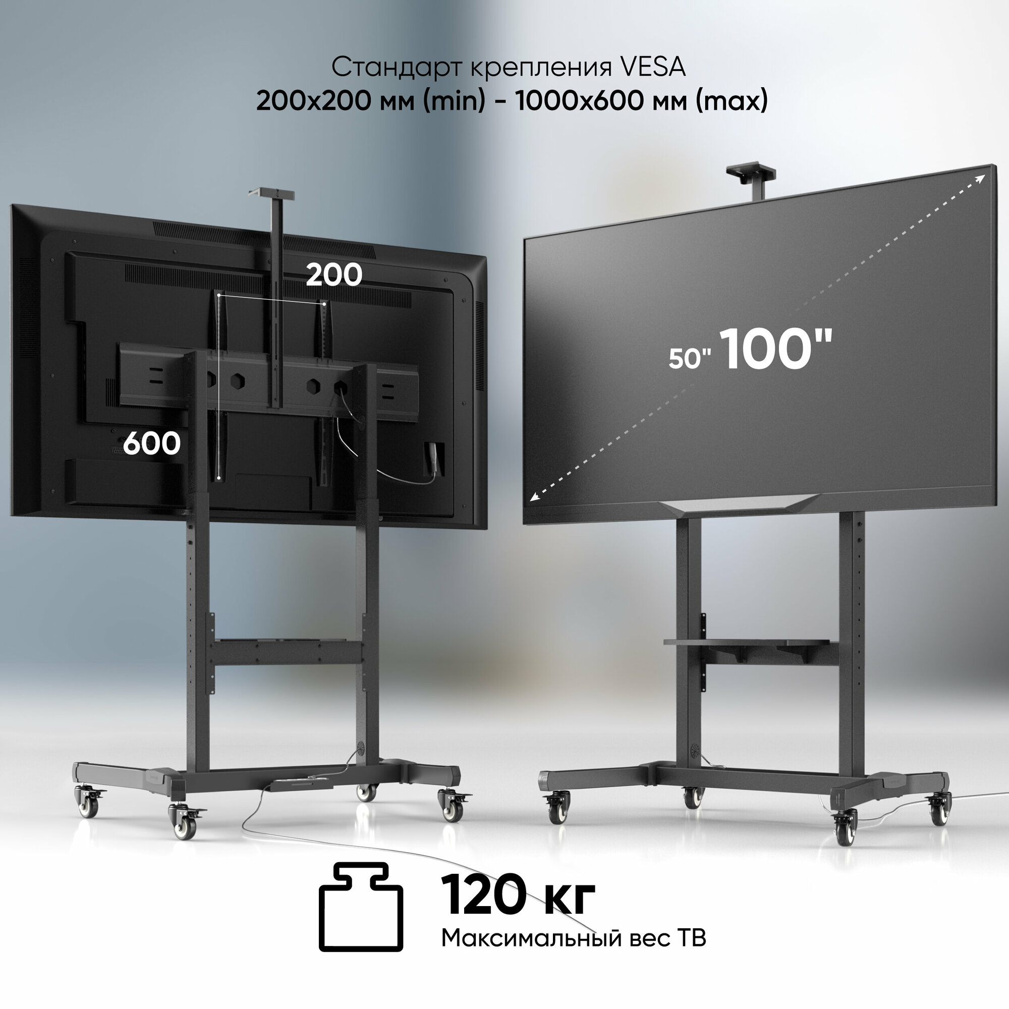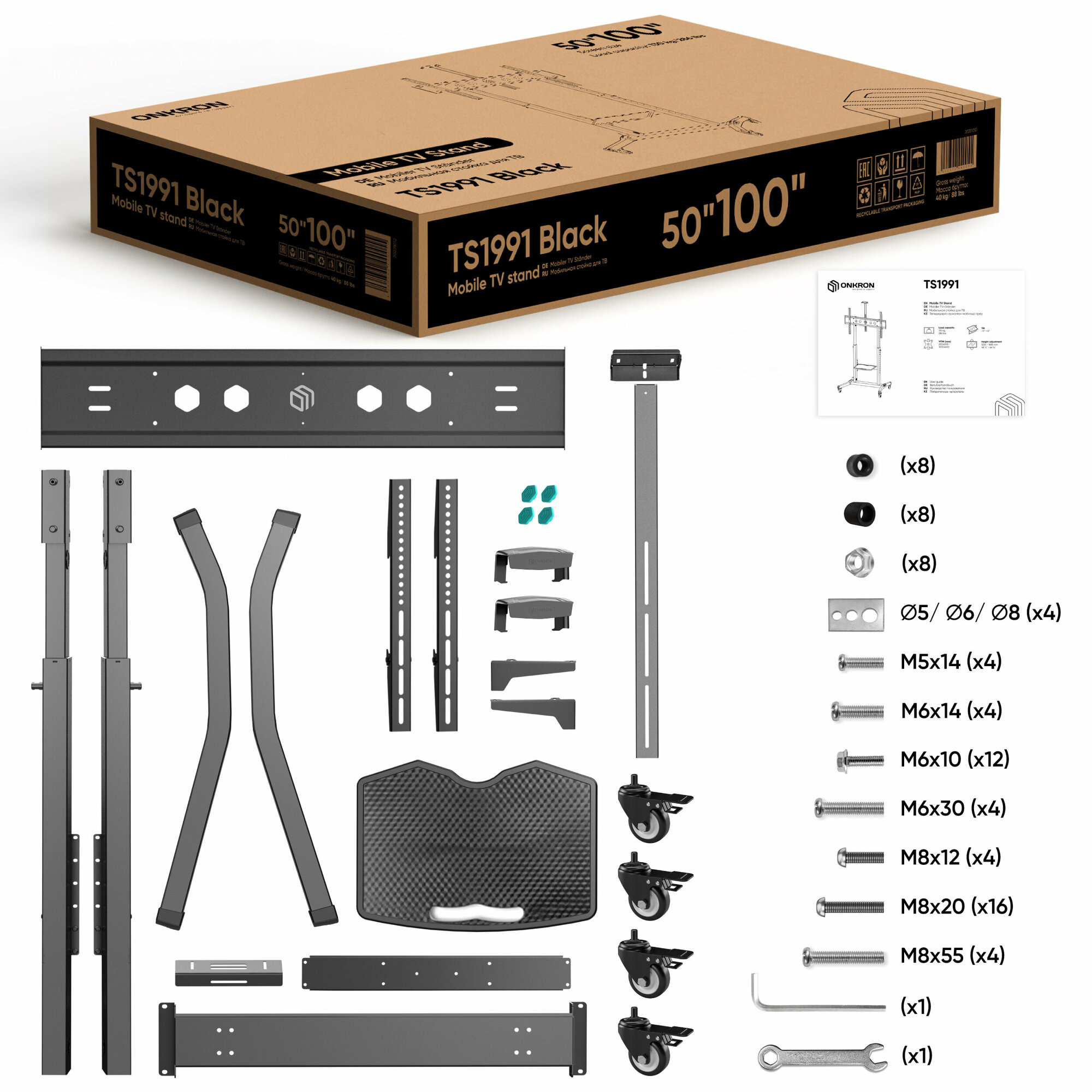 Стойка для телевизора 50"-100" ONKRON TS1991 напольная, стойка для интерактивной панели, до 120 кг, чёрная