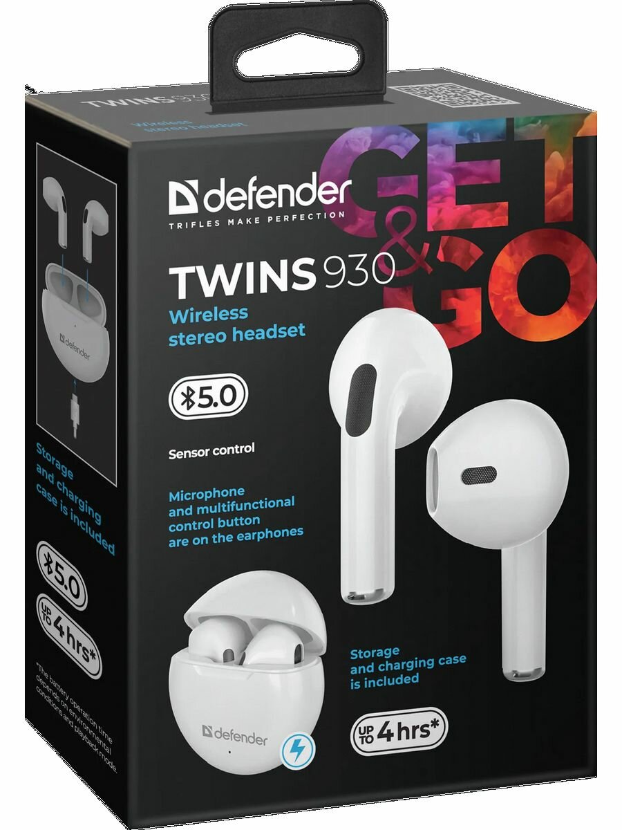 Купить Defender Гарнитура беспроводная Twins 930 белый (63931)