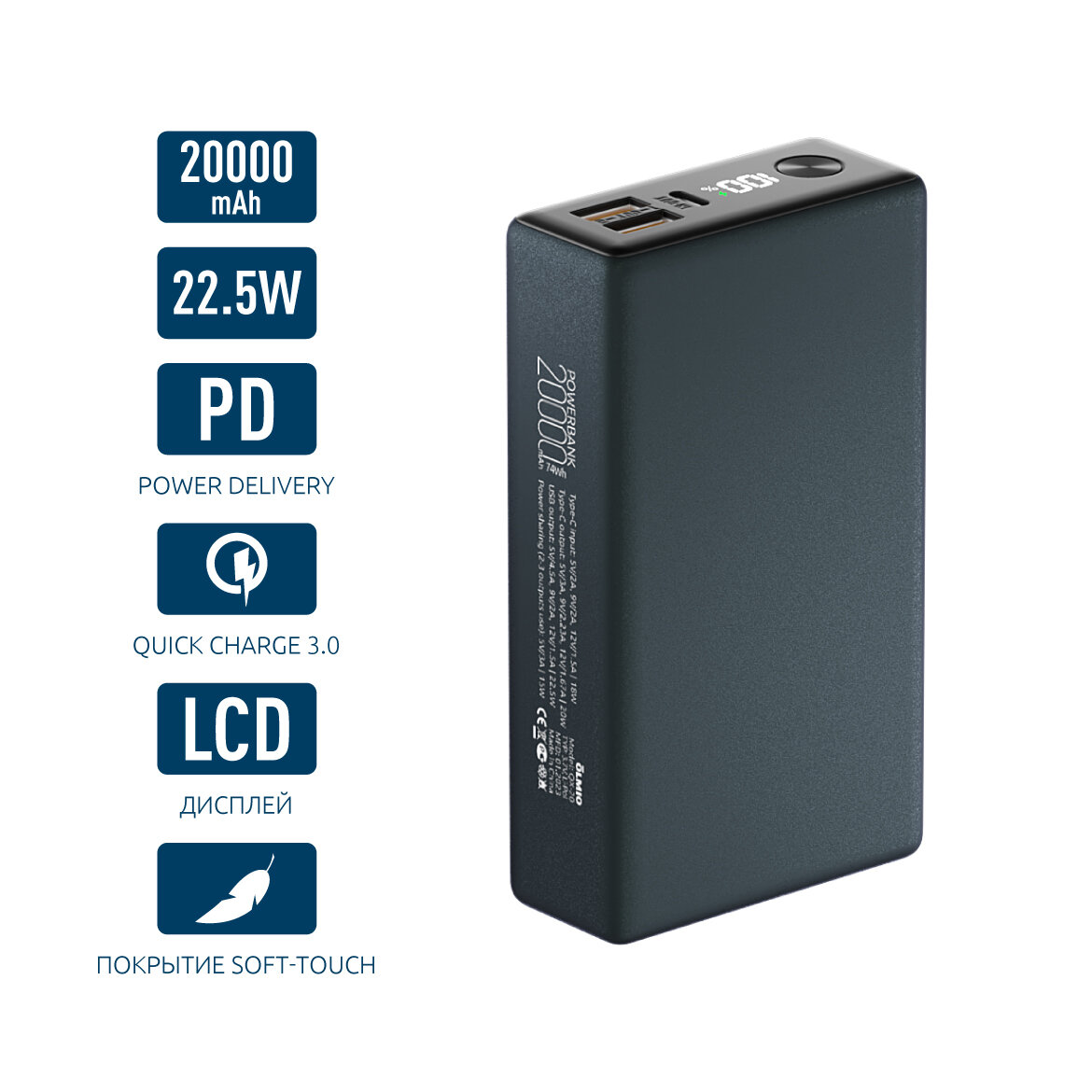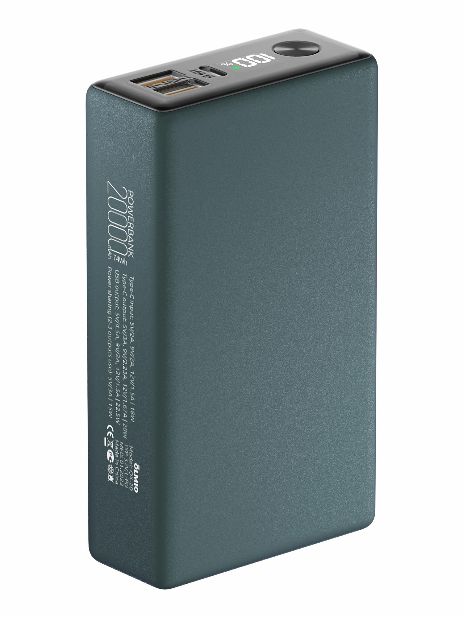 Внешний аккумулятор OLMIO QX-20 20000mAh,22.5W,QuickCharge3.0/PowerDelivery, LCD, т-зеленый, 044458