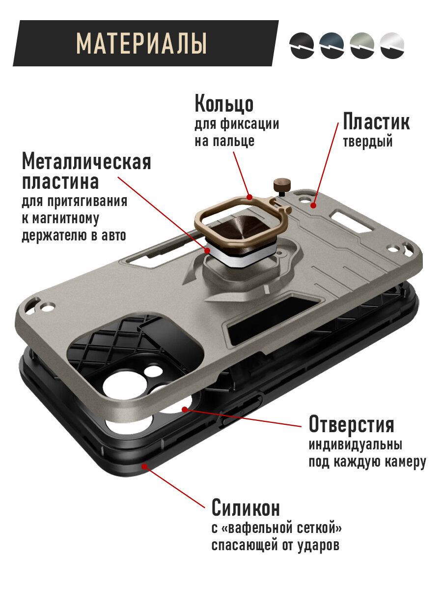 Защищенный чехол с металлической пластиной для магнитного держателя и кольцом для Oppo A58 (4G) DF oArmor-05 (silver) интересное: