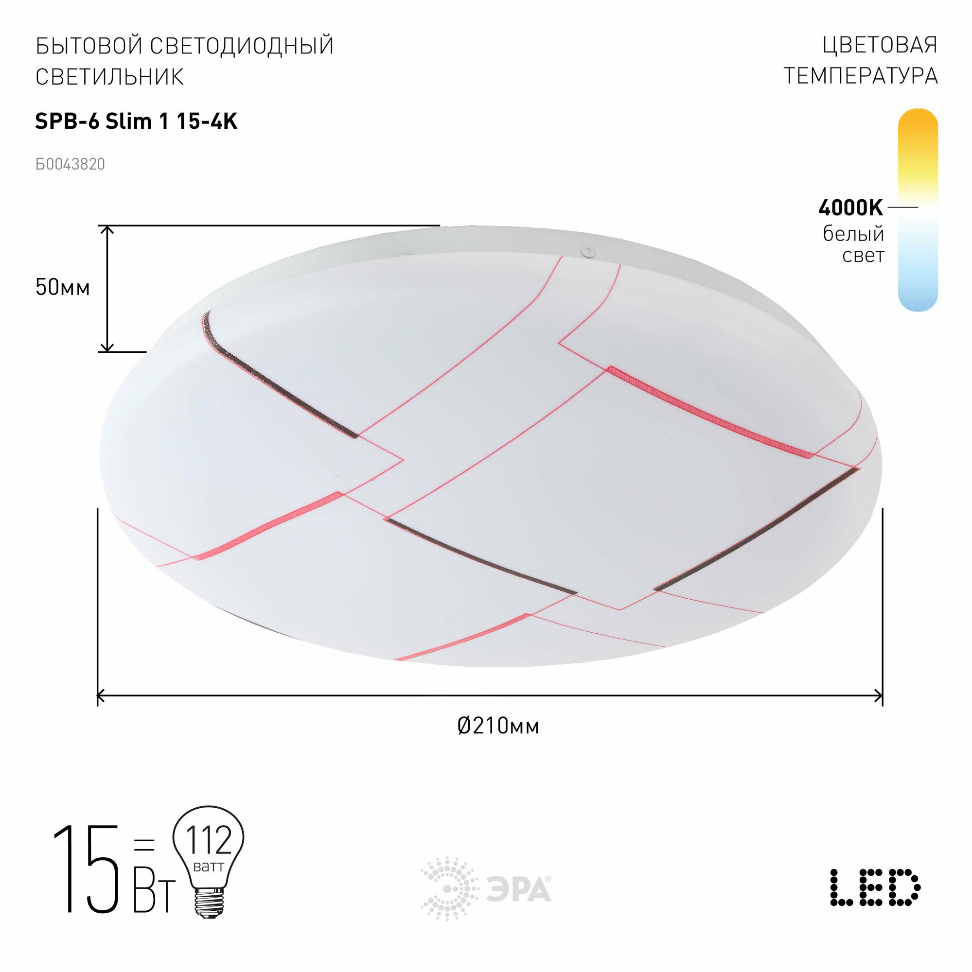 Потолочный светодиодный светильник ЭРА SPB-6-slim 1-15-4K Б0043821 интересное: