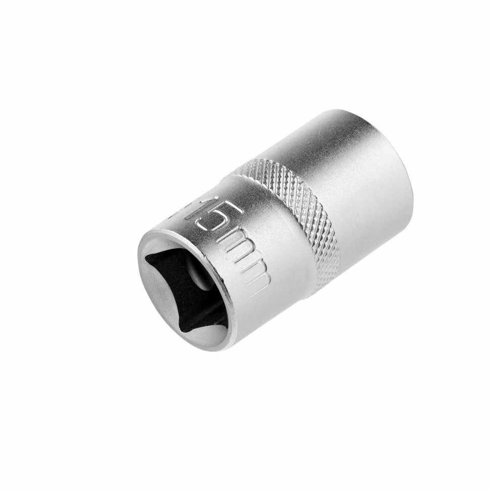 Головка торцевая, 15 мм, двенадцатигранная, CrV, под квадрат 1/2, хромированная Stels