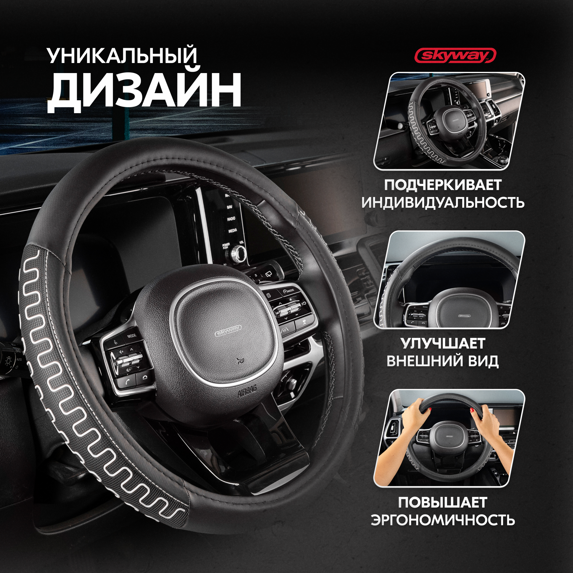 Оплетка на руль Combo-3 SKYWAY M (37-39) белый; черный экокожа, S01102358