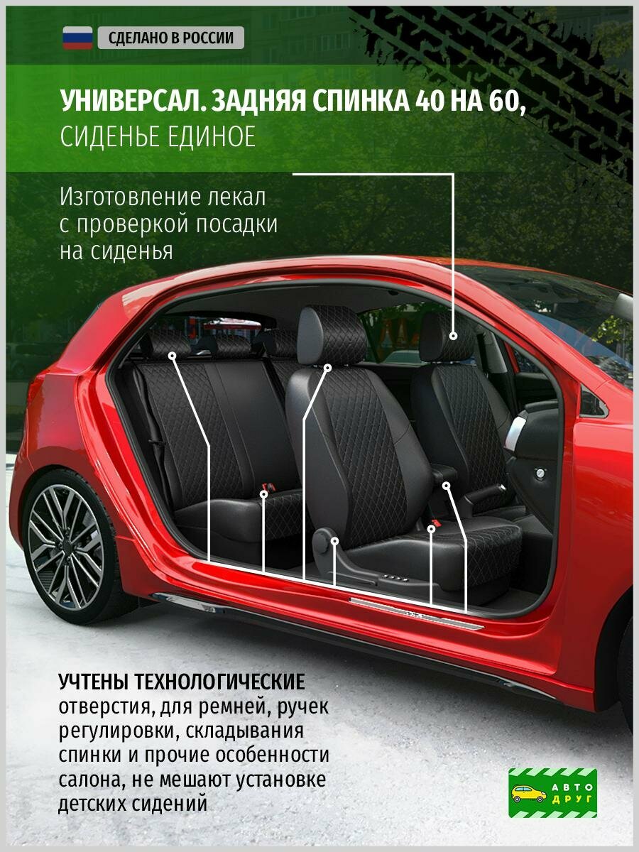 Купить Чехлы для сидений Рено Лагуна 3 2007, 2008, 2009, 2010, 2011, 2012, 2013, 2014, 2015 гв Экокожа с ромбом Черный и Черный A0577D068 Автодруг