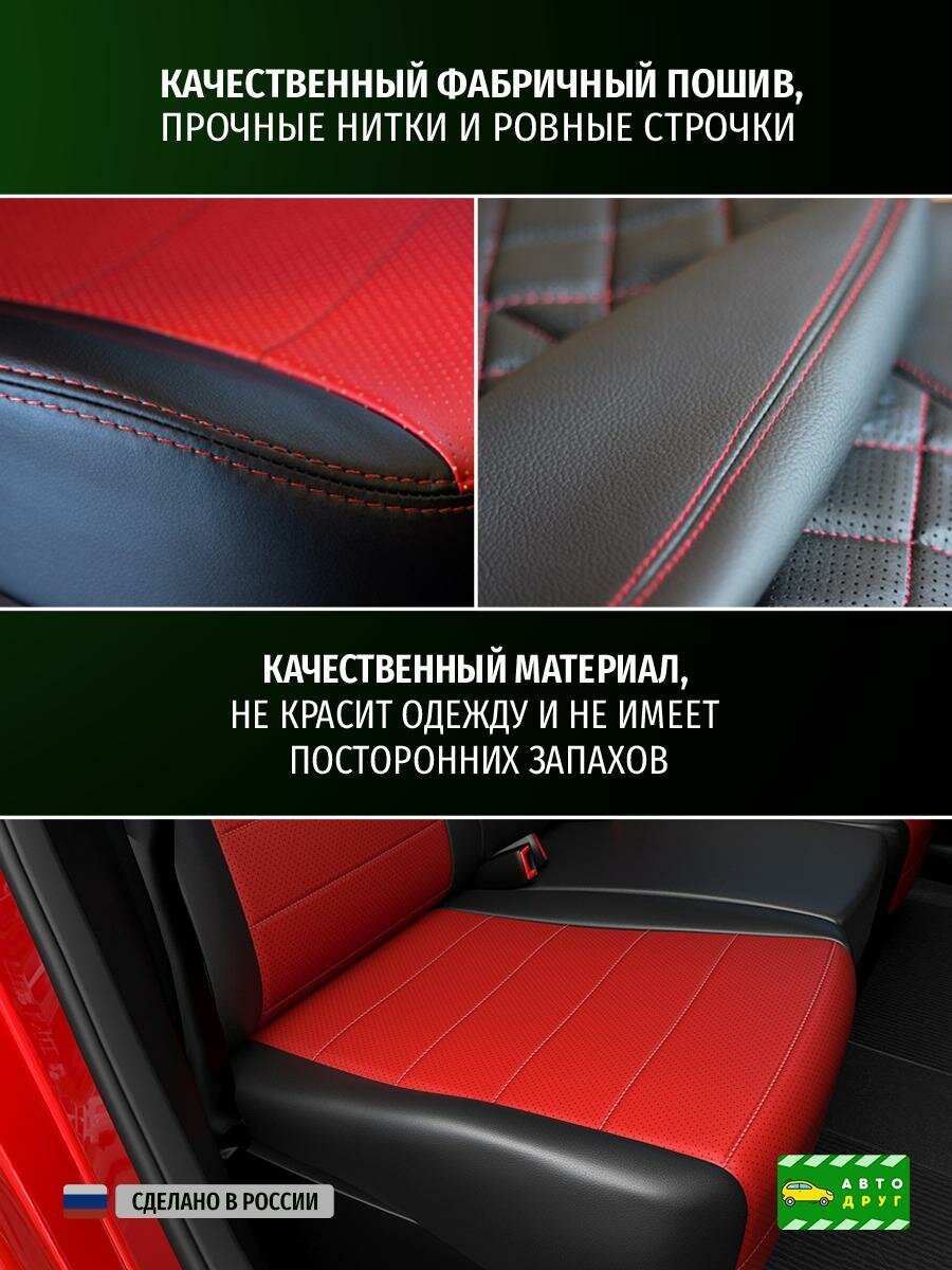 Купить Чехлы для сидений БМВ 5 F10 2009, 2010, 2011, 2012, 2013, 2014, 2015, 2016, 2017 гв Экокожа Красный и Черный A0050D008 Автодруг
