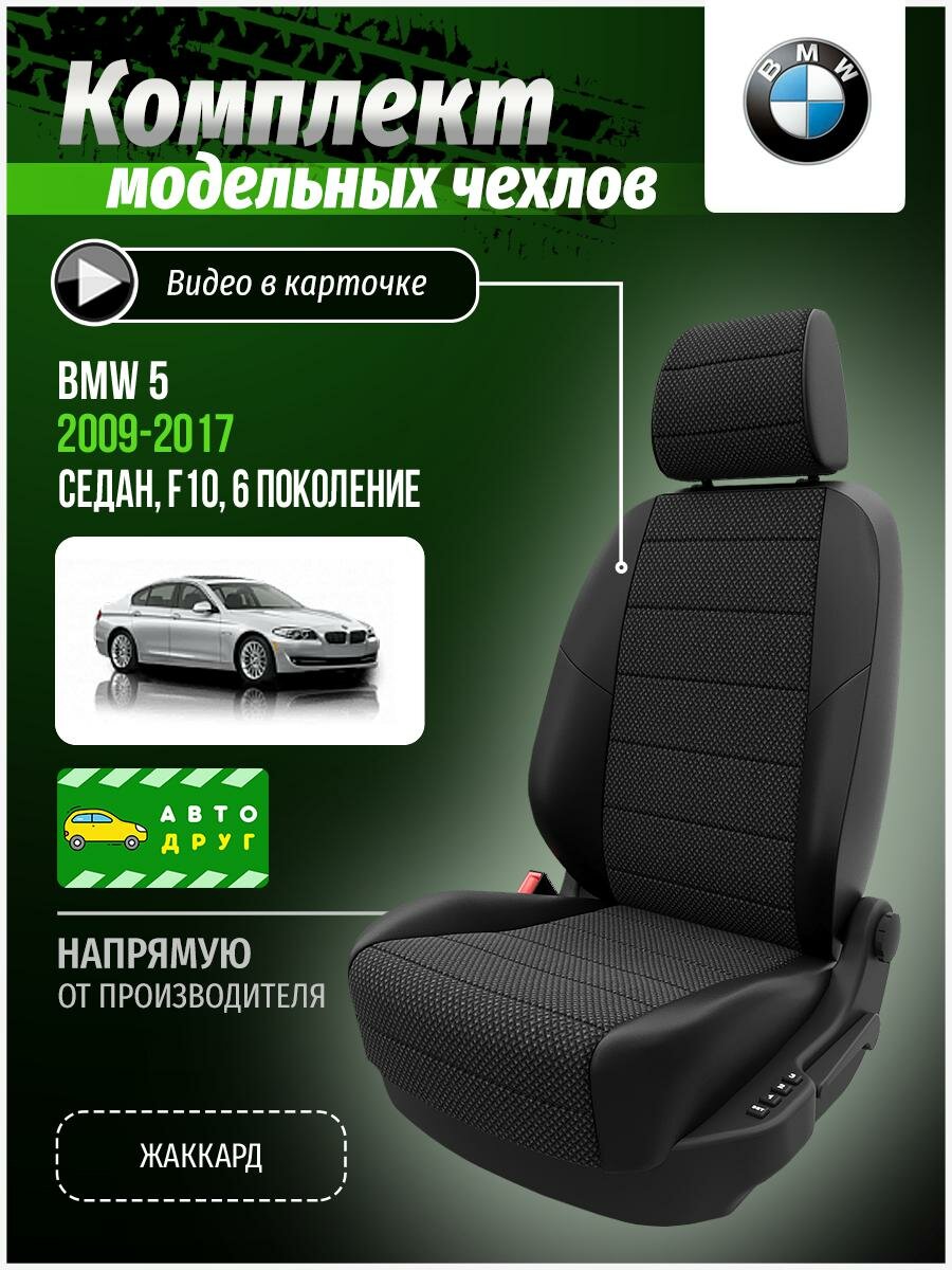 Купить Чехлы для сидений БМВ 5 F10 2009, 2010, 2011, 2012, 2013, 2014, 2015, 2016, 2017 гв Жаккард Черный и Черный A0050D044 Автодруг
