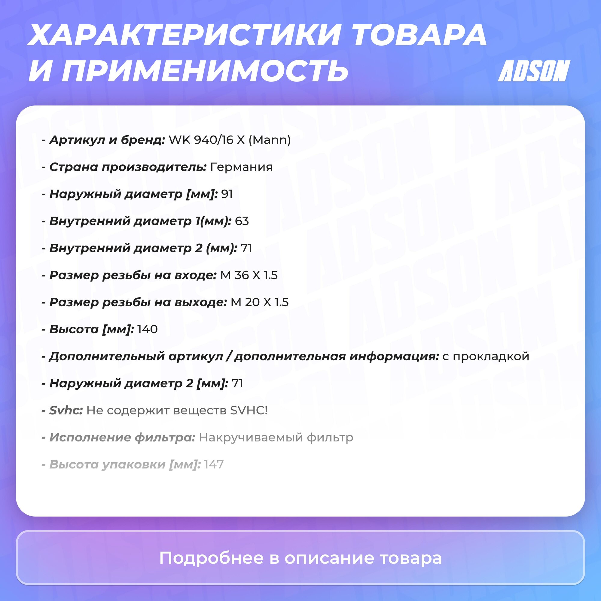 Фильтр Топливный MANN-FILTER арт. WK94016X интересное:
