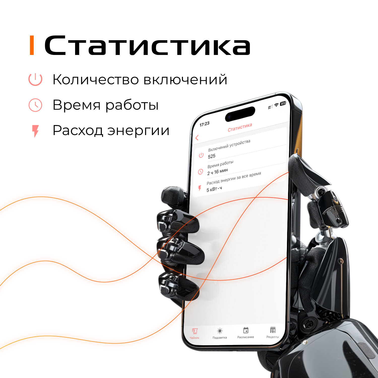 | Минусы: | Кюаркод на чайнике, который отправляет на приложение, через это приложение чайник не подключается. Пришлось искать сторонние приложения методом тыка. Через приложение Redmond r4s все подключилось и прекрасно работает. |