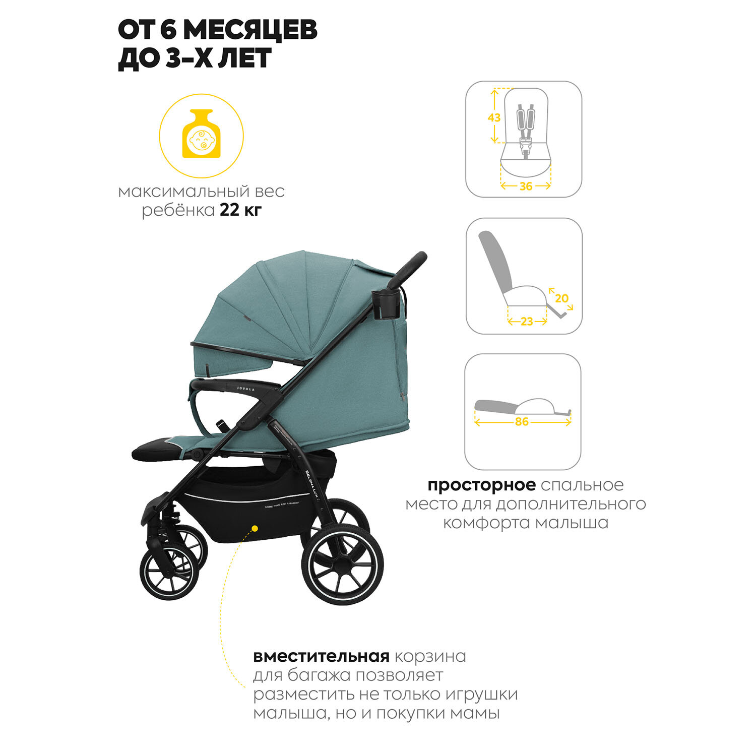 Ниже Вы можете прочитать отзывы на Прогулочная коляска Jovola SELENA LUX, всесезонная, зеленый, ознакомится с подробными характеристиками, посмотреть интересные обзоры и фотографии на Прогулочная коляска Jovola SELENA LUX, всесезонная, зеленый.