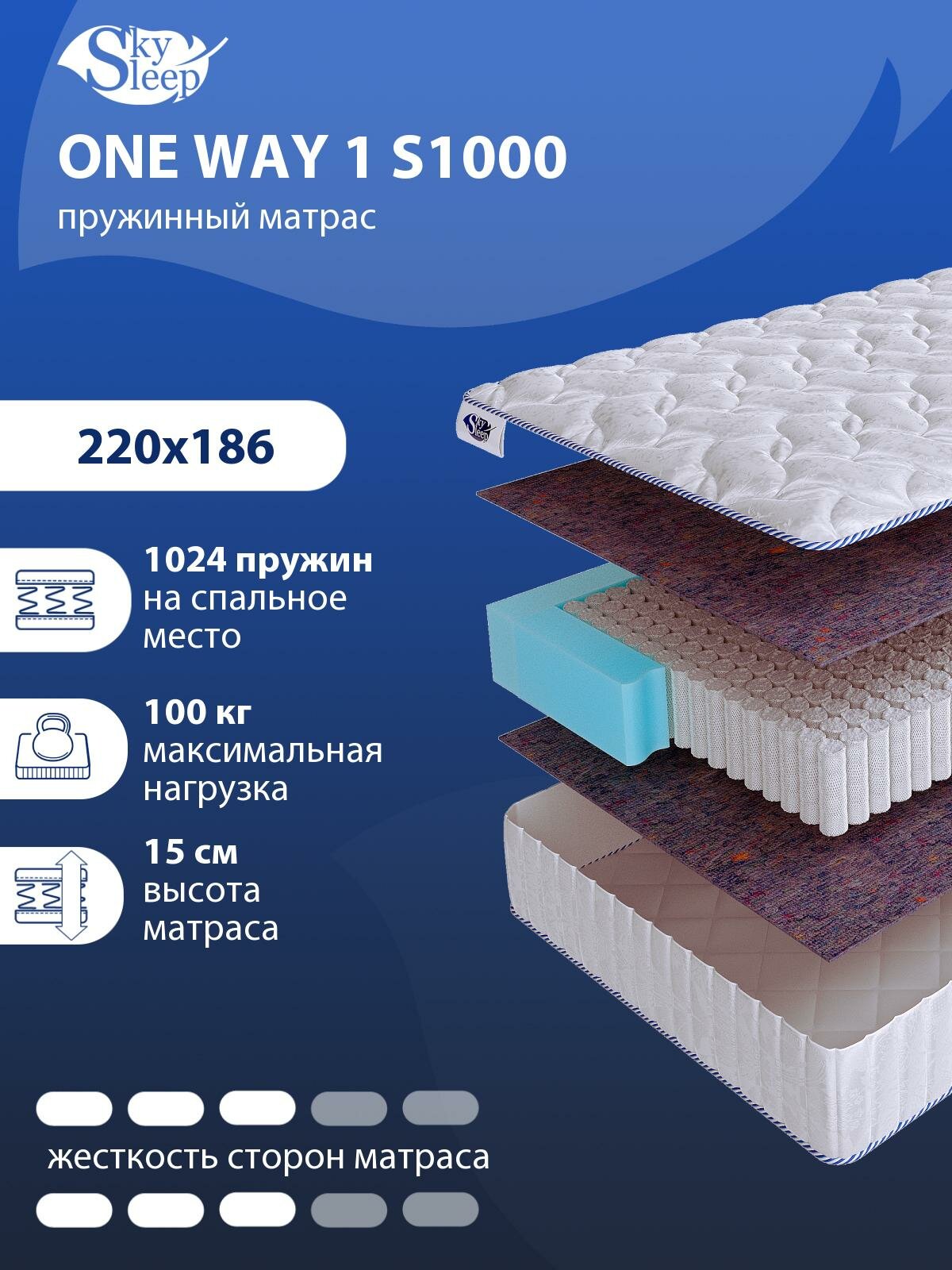 Купить Односторонний ортопедический матрас SkySleep ONE WAY 1 S1000 на кровать 220x186