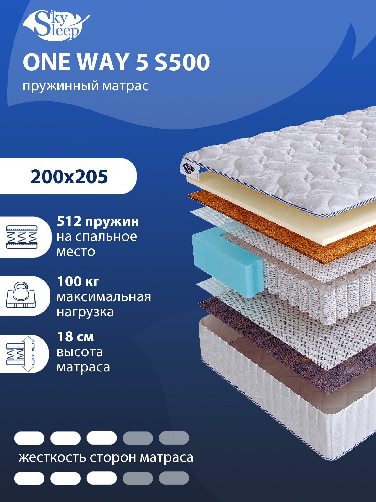 Односторонний ортопедический матрас SkySleep ONE WAY 5 S500 на кровать 205x205