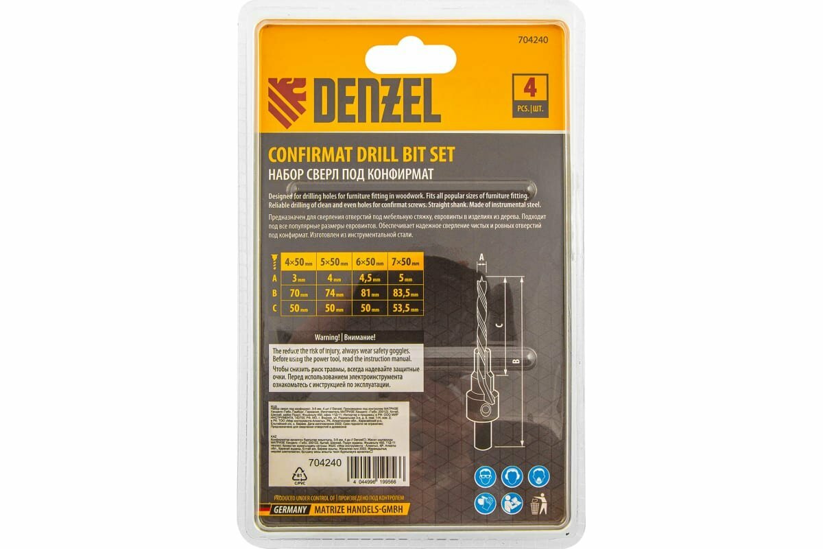 Набор сверл под конфирмат DENZEL , 3-5 мм, 4 шт, 704240