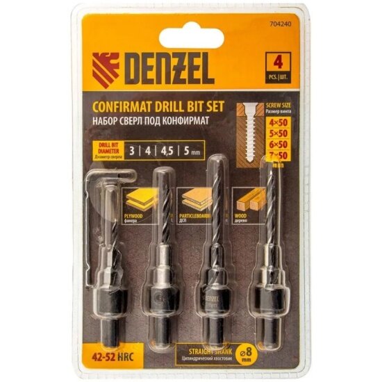 Набор сверл под конфирмат, 3-5 мм, 4 шт, Denzel, 704240 . интересное: