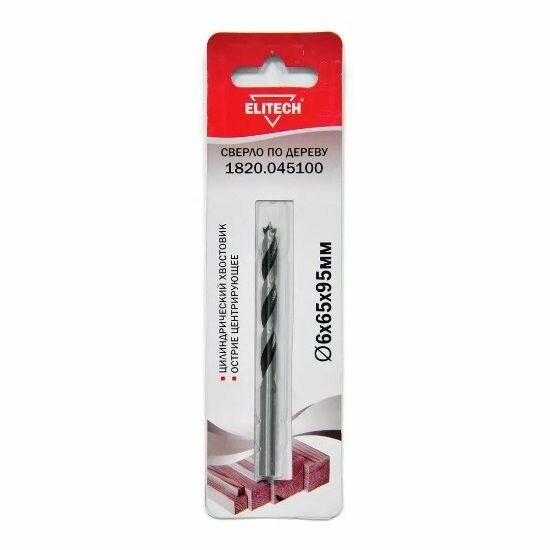 Сверло для дерева ELITECH 6x65х95мм хв-цилиндр острие центрирующее блистер