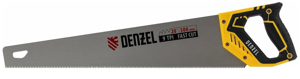 DENZEL Ножовка по дереву, 500 мм, 9 TPI, зуб 3D, двухкомпонентная рукоятка Denzel