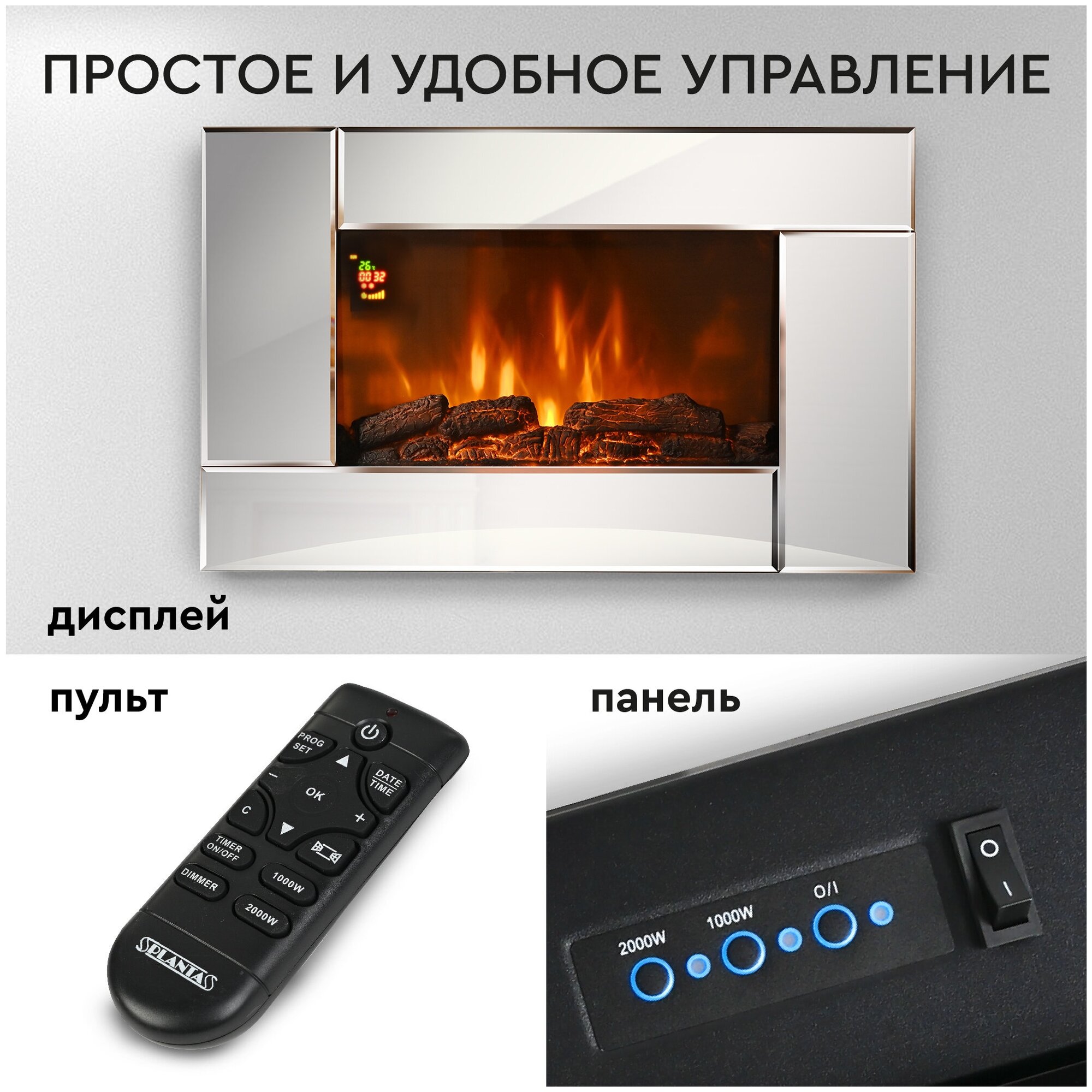 PLANTA Электрокамин PFP-WM090 MIRROR, настенный декоративный камин, ультратонкий корпус интересное: