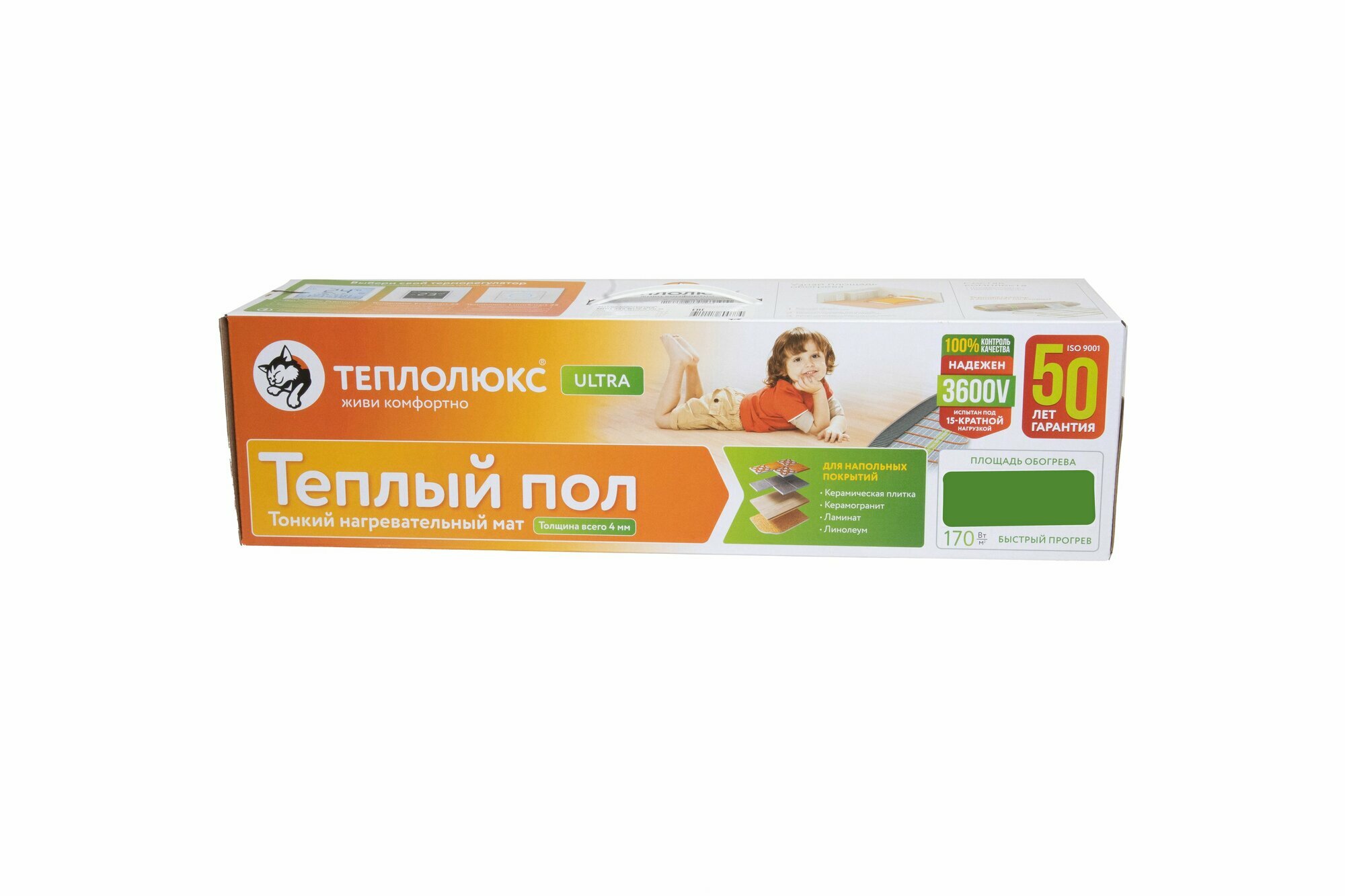 Нагревательный мат "Теплолюкс Ultra" MHH, 170Вт/1м², огнеупорный, цвет оранжевый