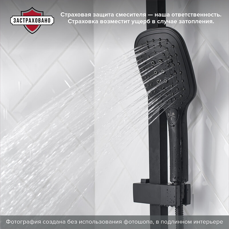 Смеситель для душа, верхняя душ., лейка, ручная лейка, с изливом, черная РМС, SUS125BL-009DK интересное: