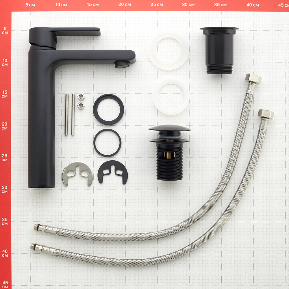 | Комплектация | смеситель, подводка для воды, донный клапан, крепеж, гарантийный талон, инструкция по эксплуатации |