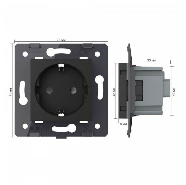 СохранитьVL-C7-C1EU-12 Розетка электрическая с заземлением защитными шторками 16A Livolo, цвет черный (механизм) интересное: