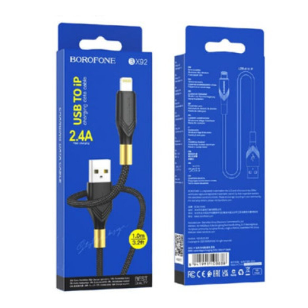 Дата-кабель Borofone BX92 USB-Lightning, 1 м, черный