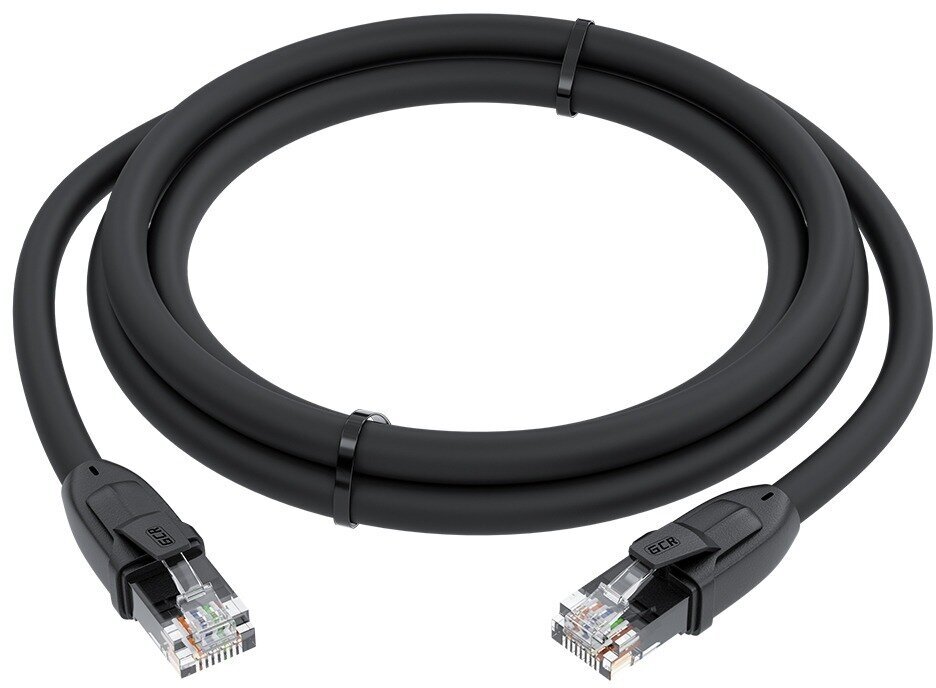 Патч-корд GCR Prof плоский прямой 2.0m, UTP медь кат.6, черный, 30 Awg, ethernet high speed 10 Гбит