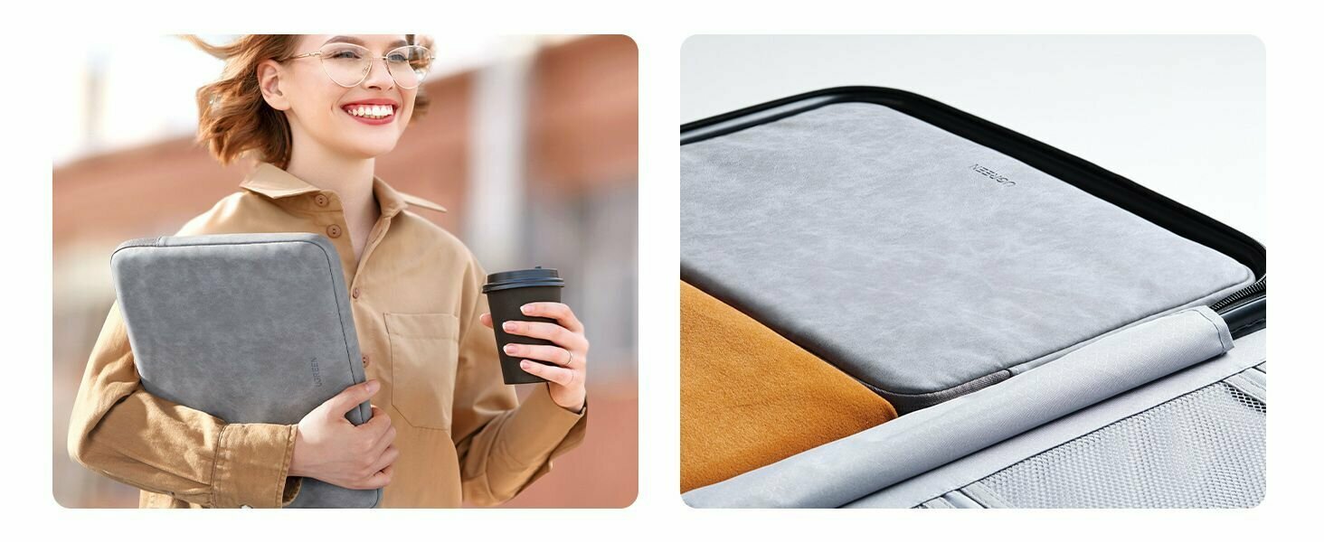 Чехол для ноутбука UGREEN LP187 / Диагональ 14 - 14.9" / Водоотталкивающий / цвет серый (20476)