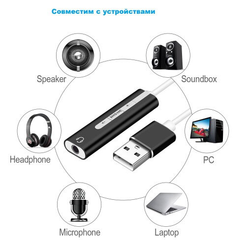 Внешняя звуковая карта USB KS-is (KS-573) интересное: