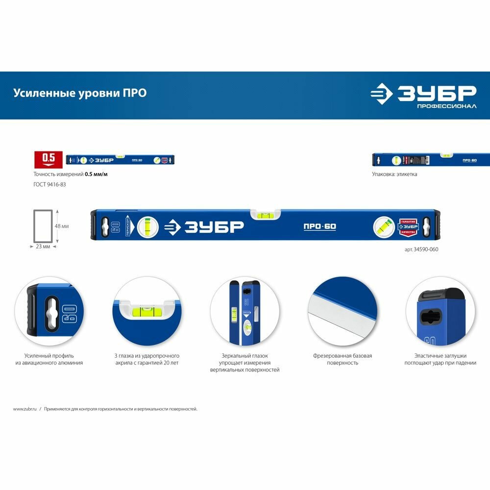 ЗУБР 600 мм, Усиленный уровень, Профессионал (34590-060)