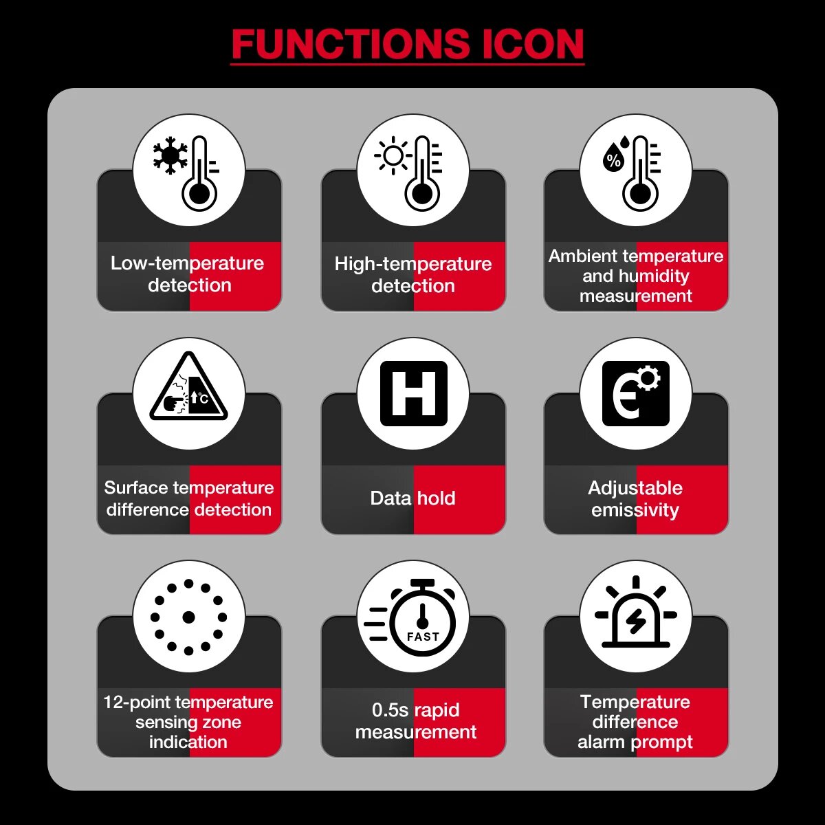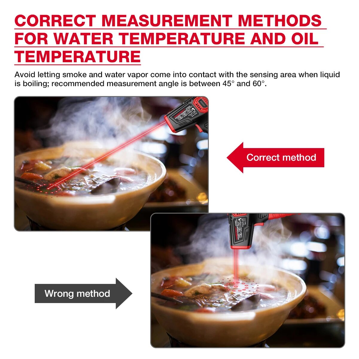 | Дополнительная информация | коэффициент излучения: 0.1~1.00; питание: батареи AAA (2 шт.); погрешность: -30°C~0°C ±3°C, 0°C~380°C ±(1.5% х показание +2°C/4°F); мощность лазера: |