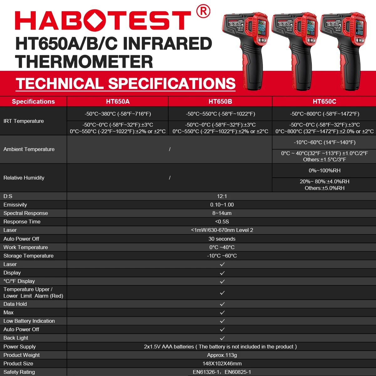 Ниже Вы можете прочитать отзывы на Дистанционный измеритель температуры (пирометр) Habotest HT650A с круговым лазерным прицелом (от -30 до 380), ознакомится с подробными характеристиками, посмотреть интересные обзоры и фотографии на Дистанционный измеритель температуры (пирометр) Habotest HT650A с круговым лазерным прицелом (от -30 до 380).