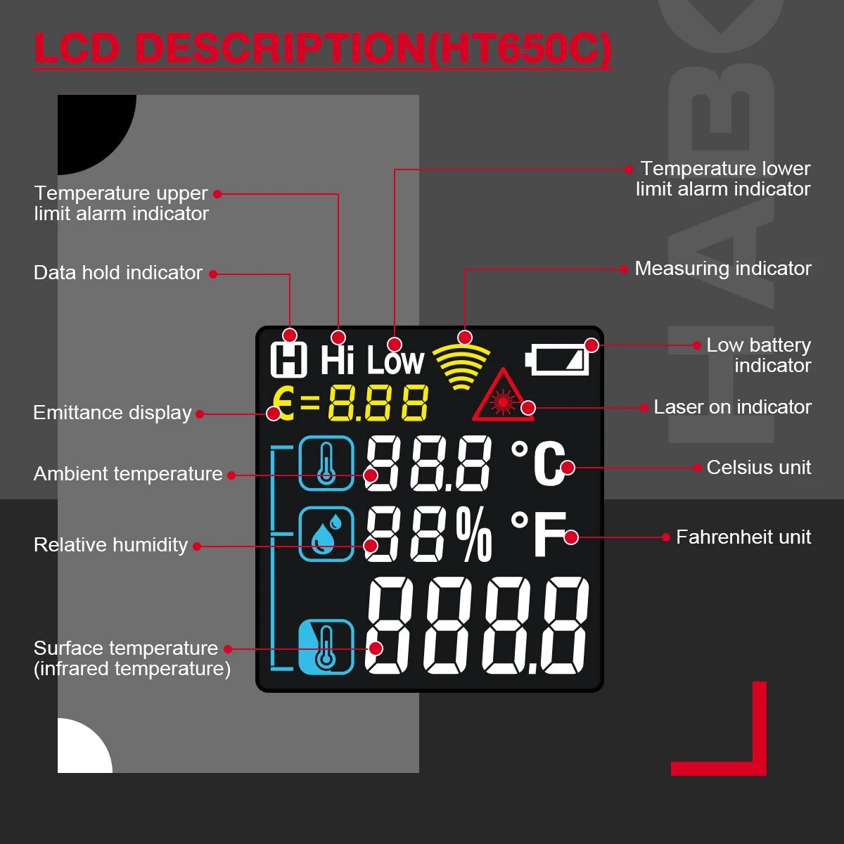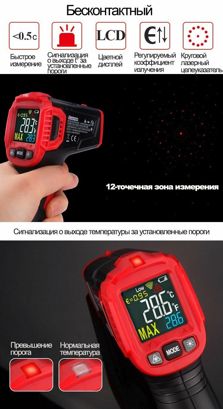 Дистанционный измеритель температуры (пирометр) Habotest HT650A с круговым лазерным прицелом (от -30 до 380) интересное: