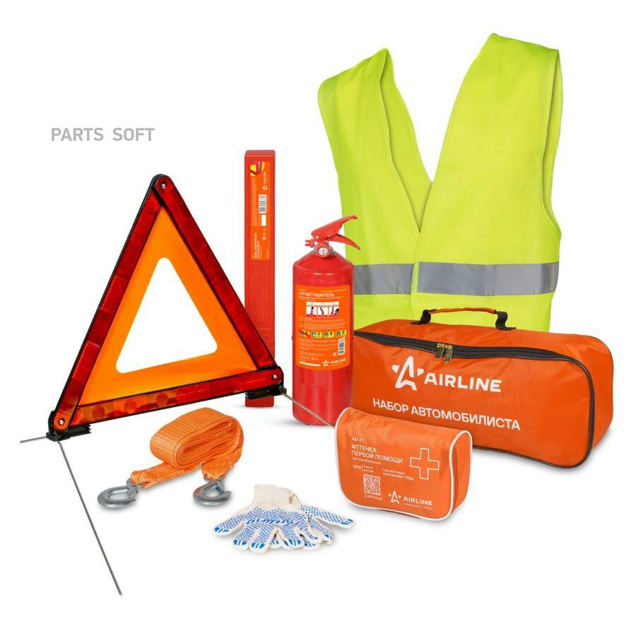 AIRLINE ANA002 Набор автомобилиста Техосмотр-2 (Знак AT-02+Аптечка AM-01+Огнетушитель ОП2 AO-OP2+Перчатки AWG-C-01+Трос 3,5т ATR-S-3.5+Жилет ARW-AV-02