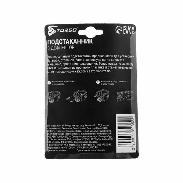 Подстаканник в дефлектор TORSO, автомобильный, черная
