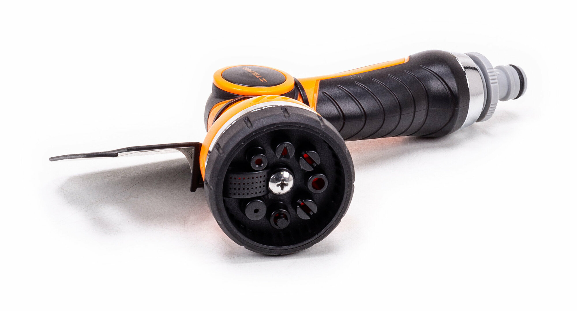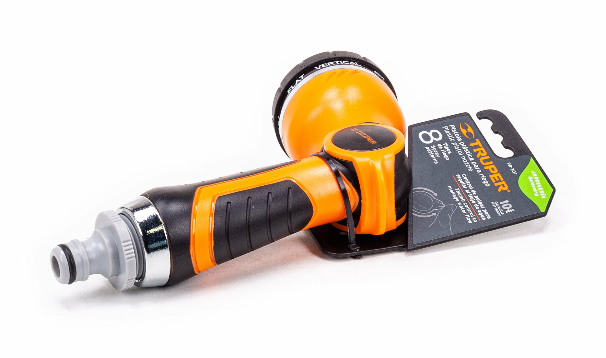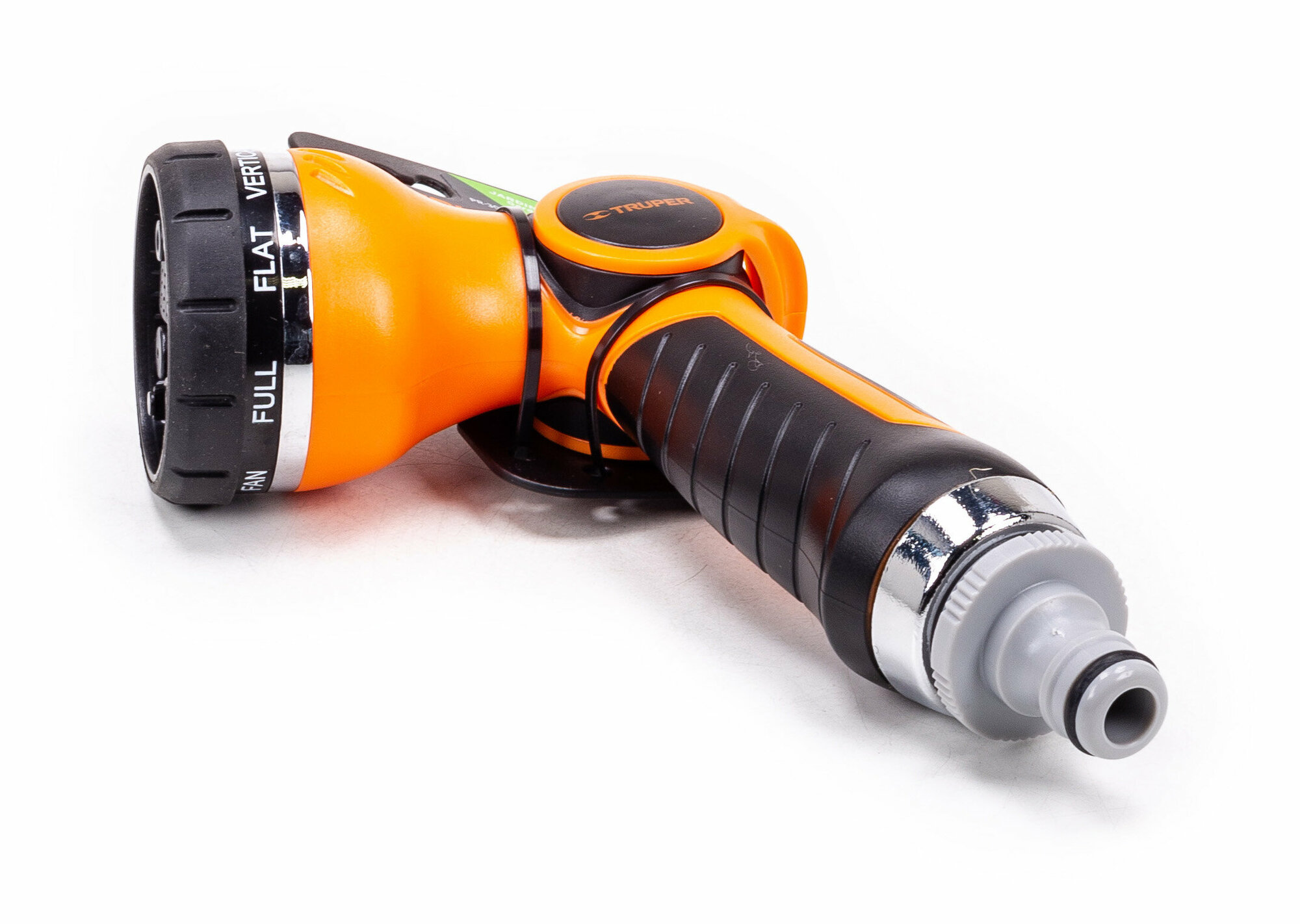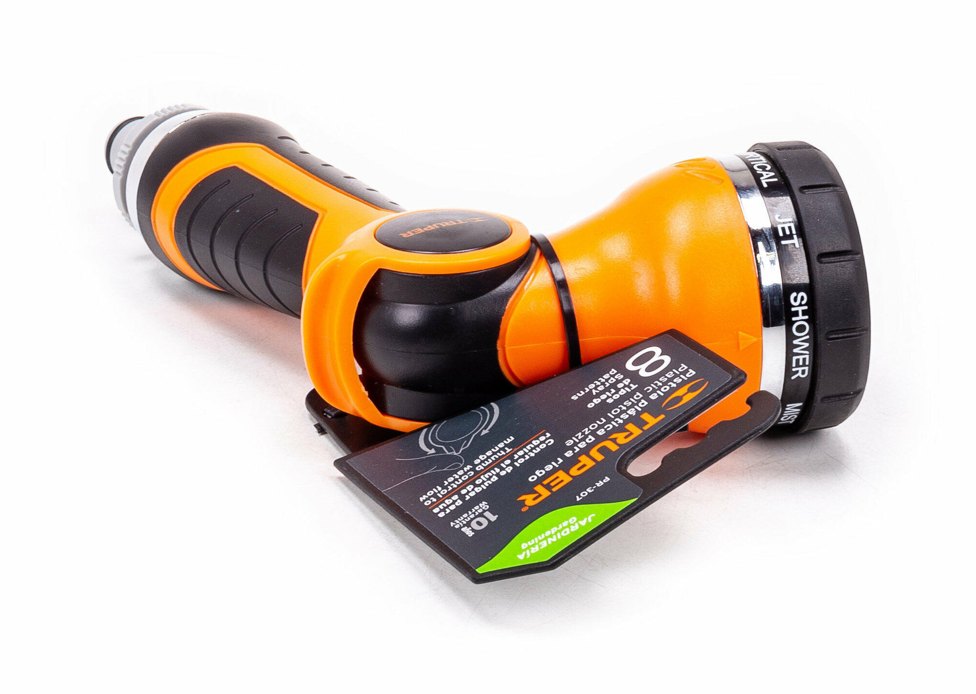 Пистолет для полива TRUPER / Трапер из термопластичной резины, черно-оранжевый, 8 режимов распыления, 20х7х3см / сад и огород