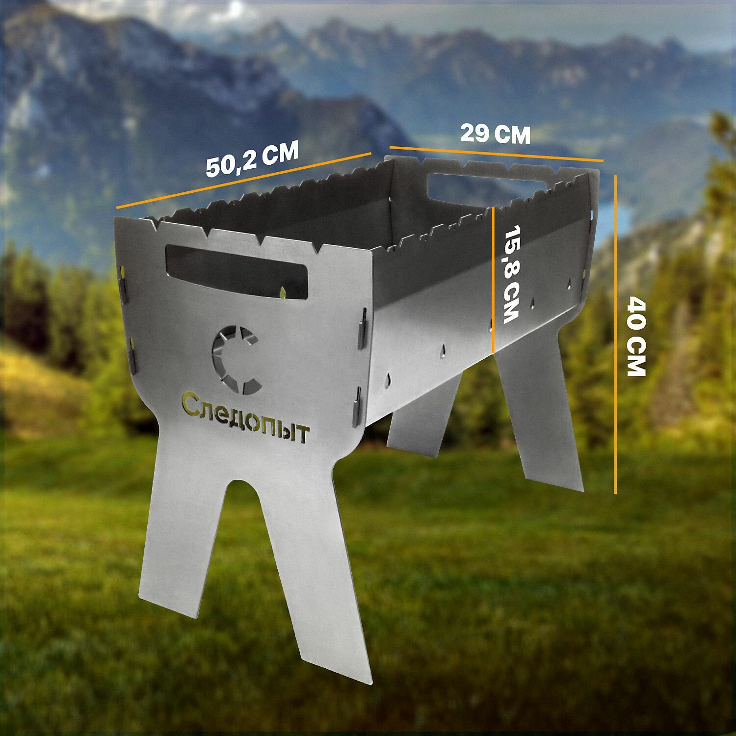 Мангал складной походный Следопыт, 490х310х370 мм, толщина 2 мм, многоразовый, без шампуров / Мангал дачный PF-GR-01