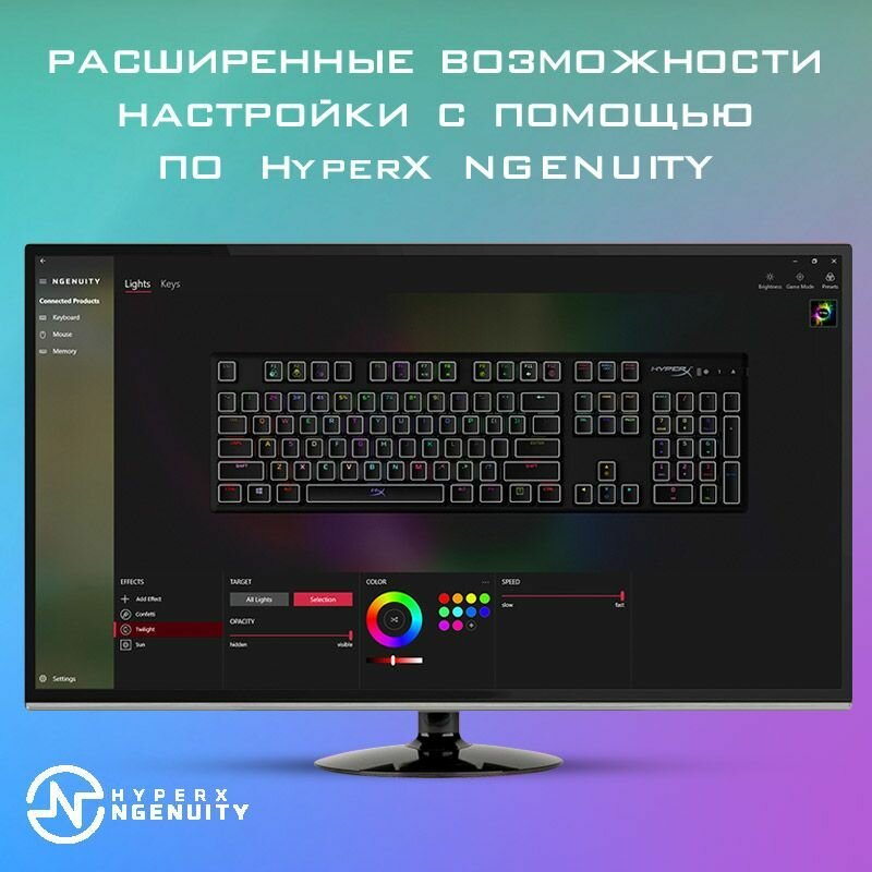 | Плюсы: | звука клавиш почти нет, софт с настраиваемой подсветкой и макросами, f-кнопки также используются для доп функций |