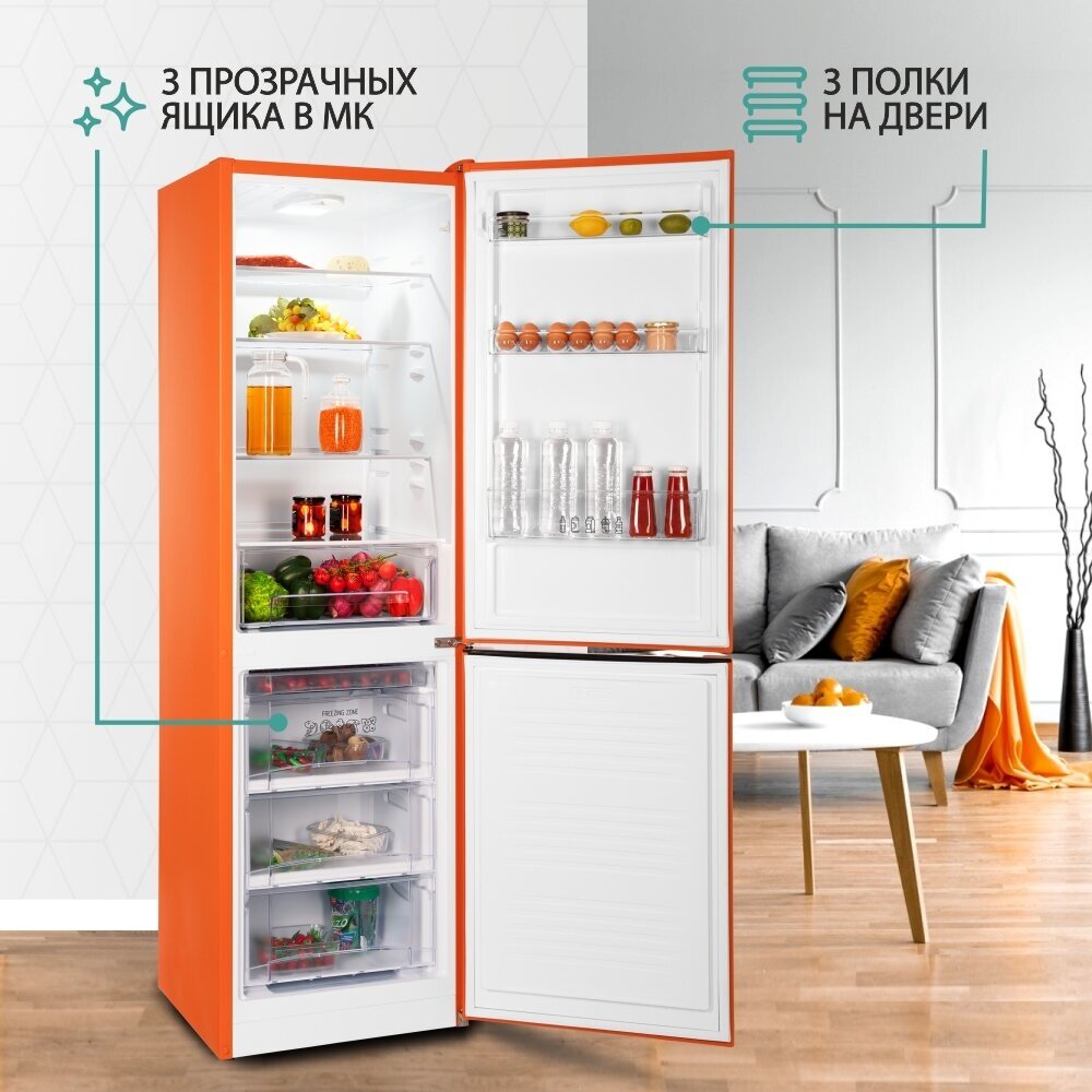 Холодильник NORDFROST NRB 162NF Or двухкамерный,оранжевый матовый, No Frost в МК, 310 л