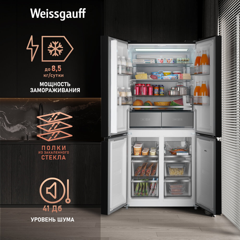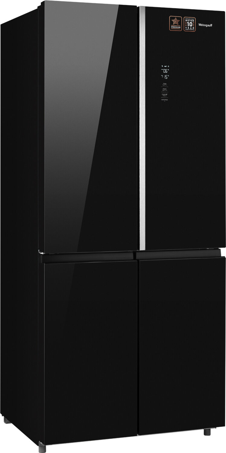 Отдельностоящий холодильник с инвертором Weissgauff WCD 590 Nofrost Inverter Premium Ecofresh Black Glass 3 года гарантии, CrossDoor, технология Multi Air Flow и Metal-Tech Cooling, суперзаморозка, суперохлаждение, LED-освещение