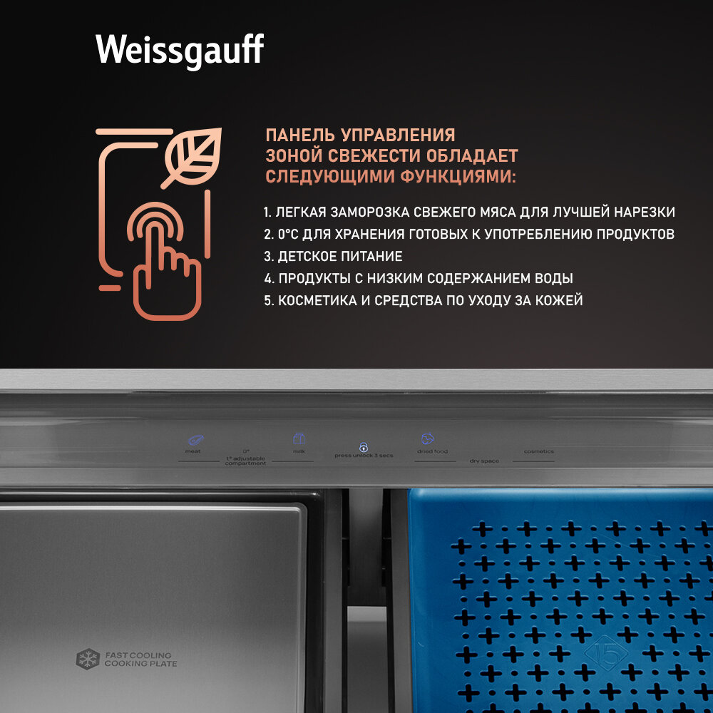 Холодильник side by side Weissgauff WCD 590 Nofrost Inverter Premium Biofresh Inox