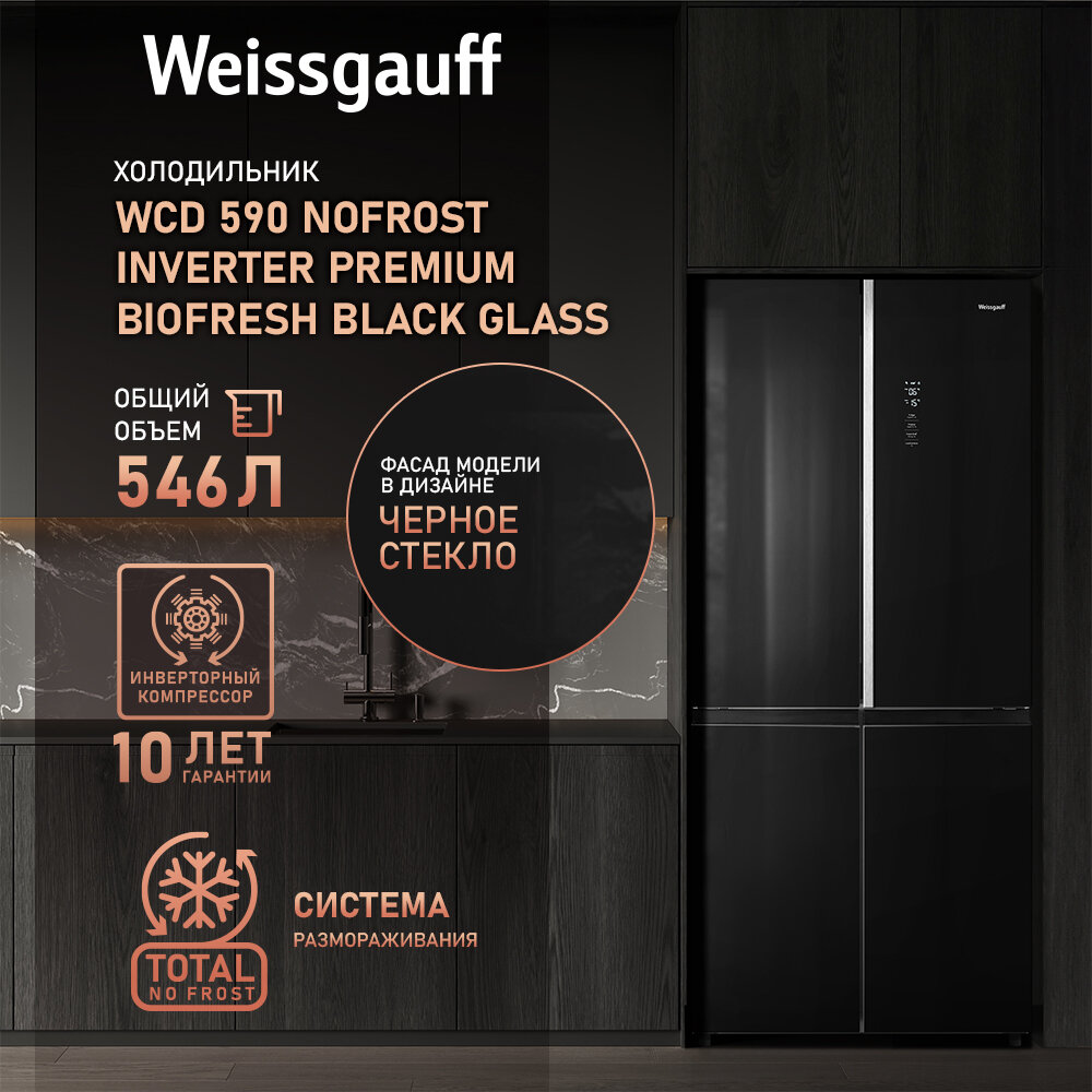 Холодильник с инвертором Weissgauff WCD 590 Nofrost Inverter Premium Biofresh Gold Glass