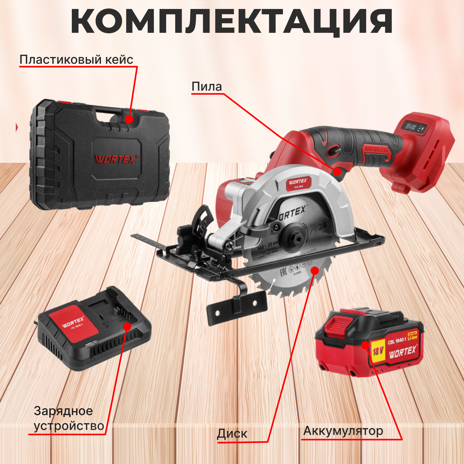 Пила циркулярная (дисковая) аккумуляторная WORTEX CCS 1814 ALL1 с АКБ и ЗУ (0329269) интересное: