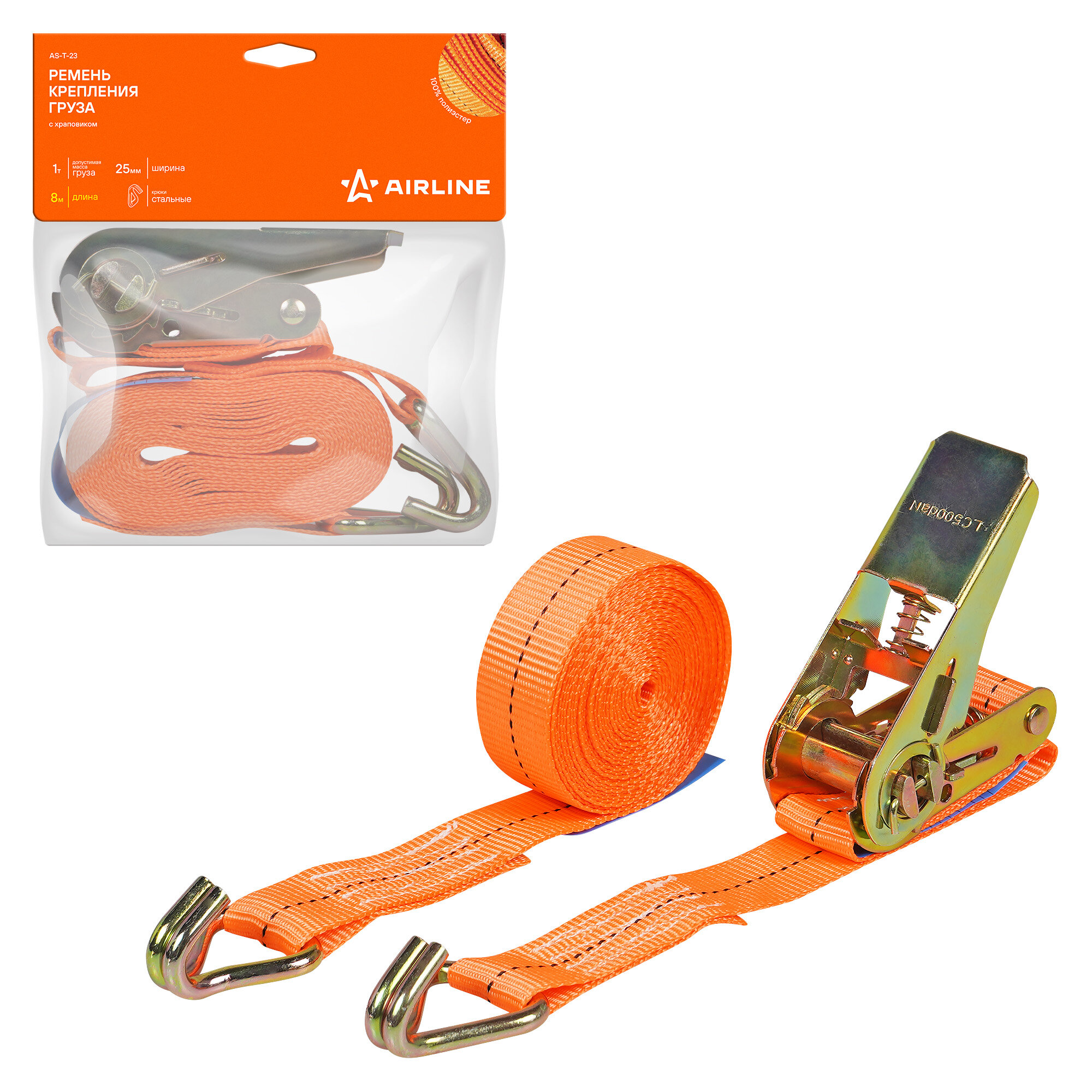 Ремень крепления груза (8 м) 1 т "AIRLINE" (с храповиком) AIRLINE AS-T-23