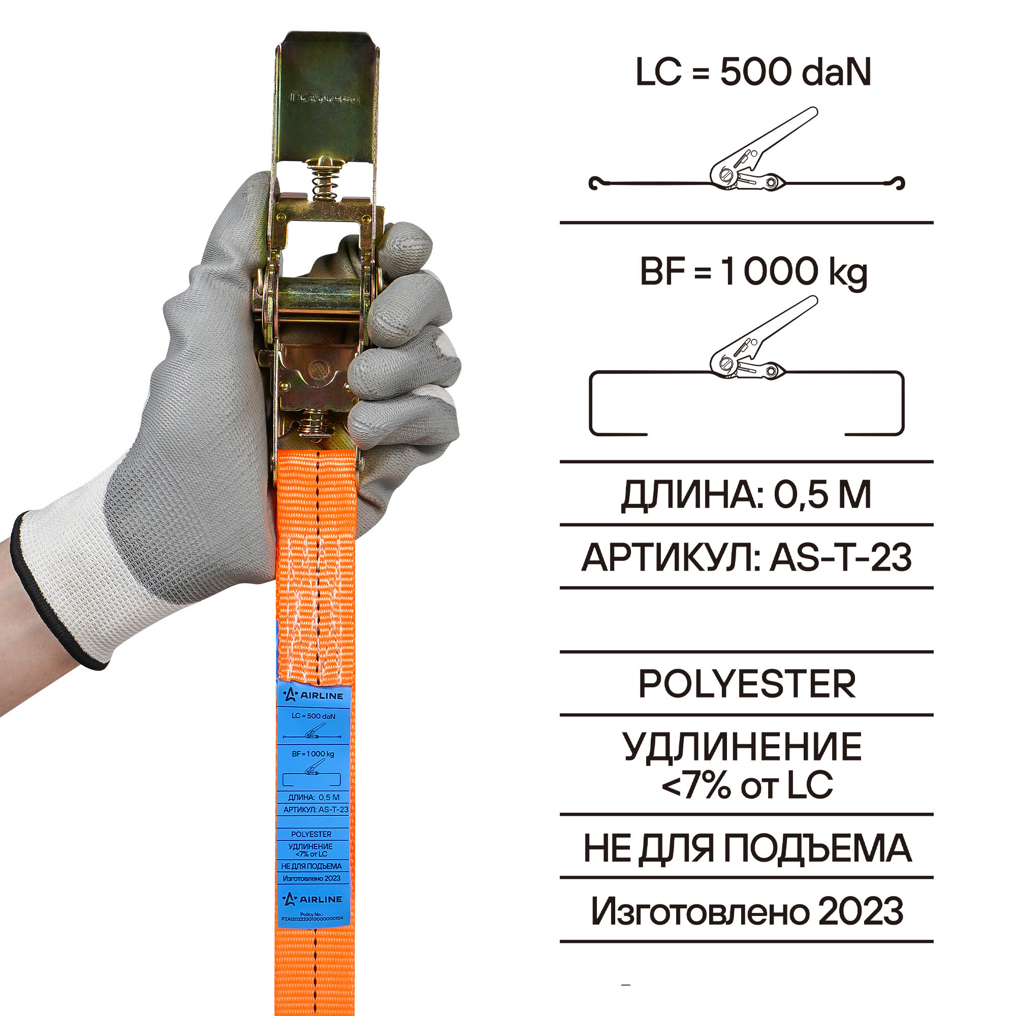 Ремень крепления груза с храповиком 8 м, 1 т (AS-T-23) AIRLINE арт. AS-T-23