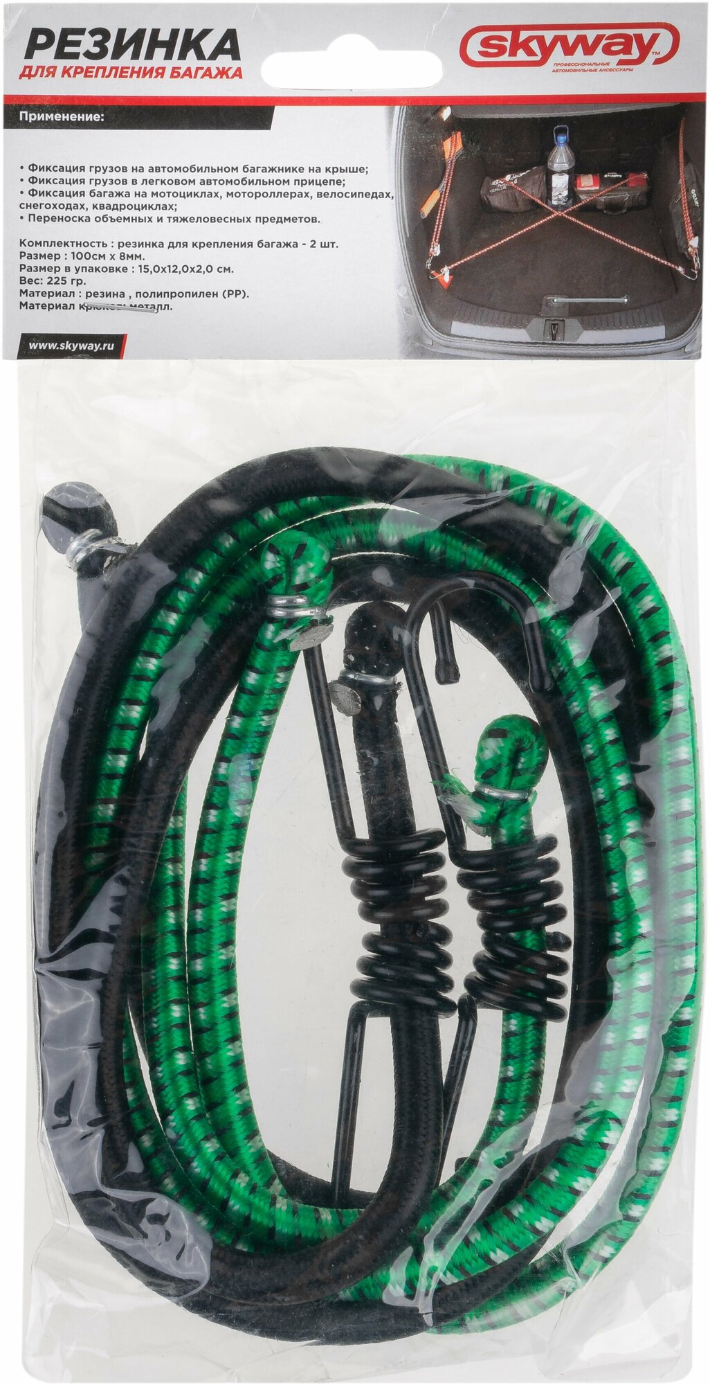 Резинка для крепления багажа (эластичная) 2шт: 8мм х 100см (метал.крючки) Skyway S06001007
