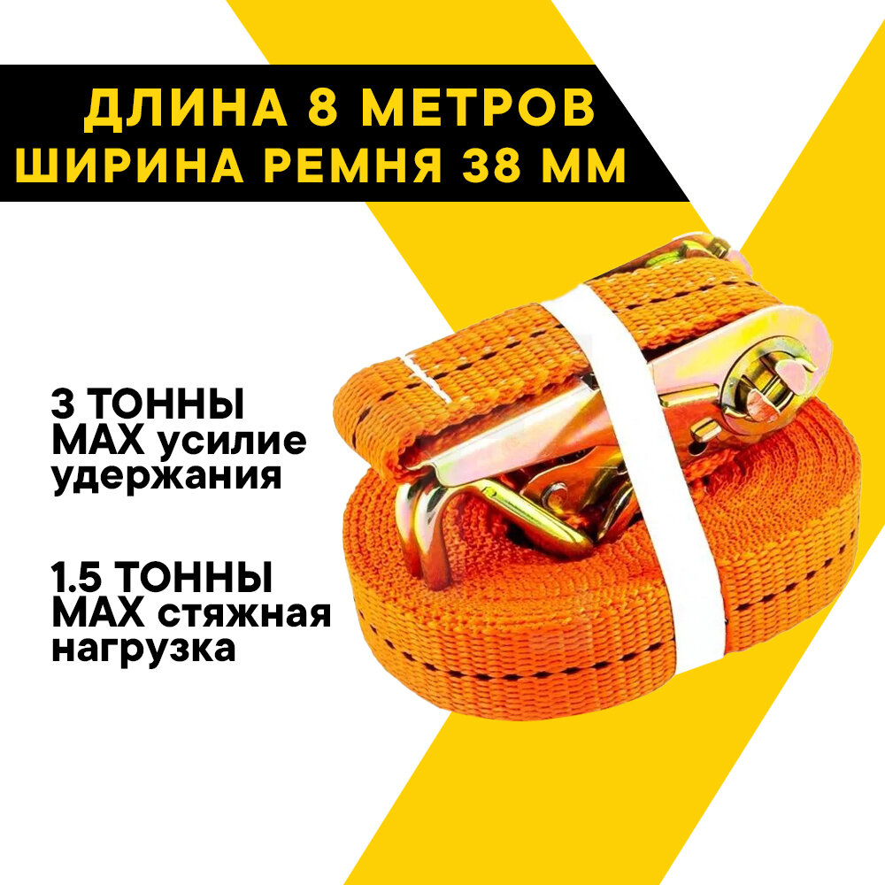 Стяжной ремень, ремень крепления груза с храповым механизмом "Топ Авто ", дл. 8 м, шир.38 мм, 1500/3000 кг, РК158 / стяжка для крепления груза