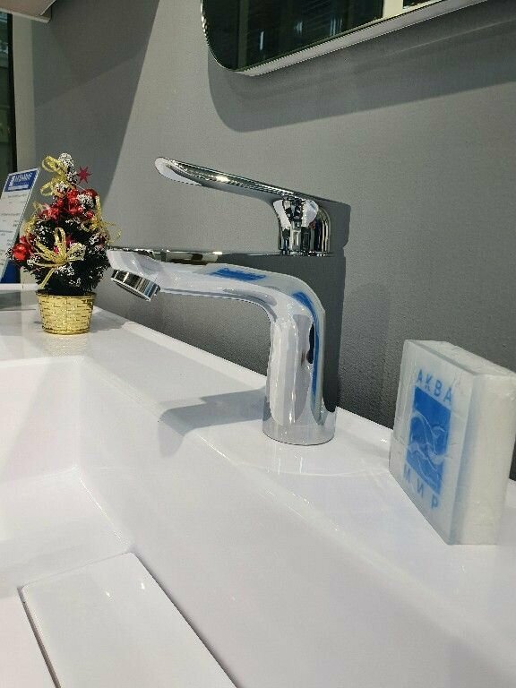 | Минусы: | Очень маркий. После каждого умывания приходиться его протирать, иначе брызги высыхают безобразными пятнами на зеркальной поверхности. |