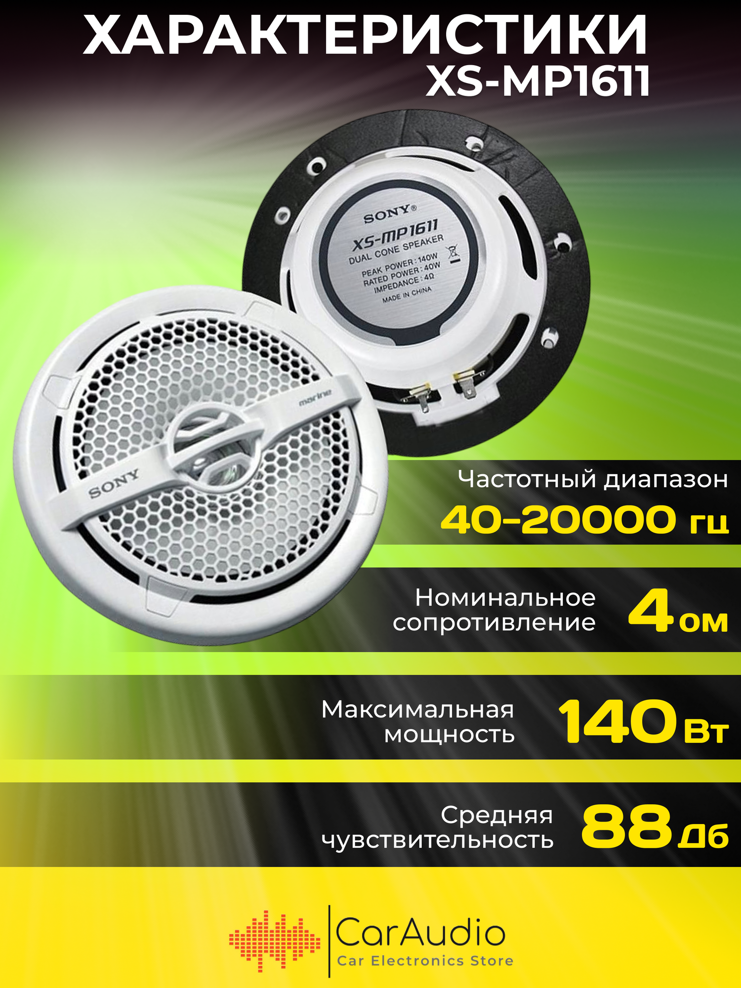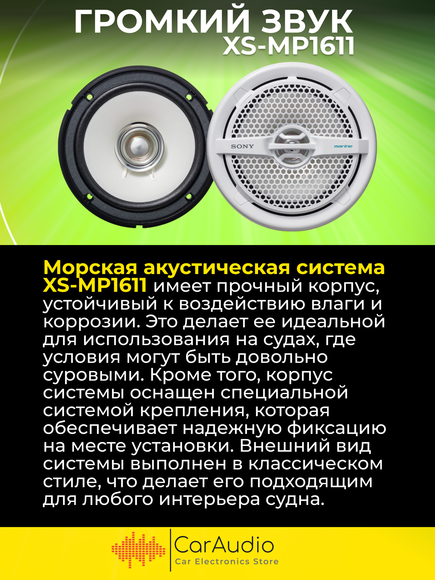Акустика SONY XS-MP1611 (морская серия) интересное: