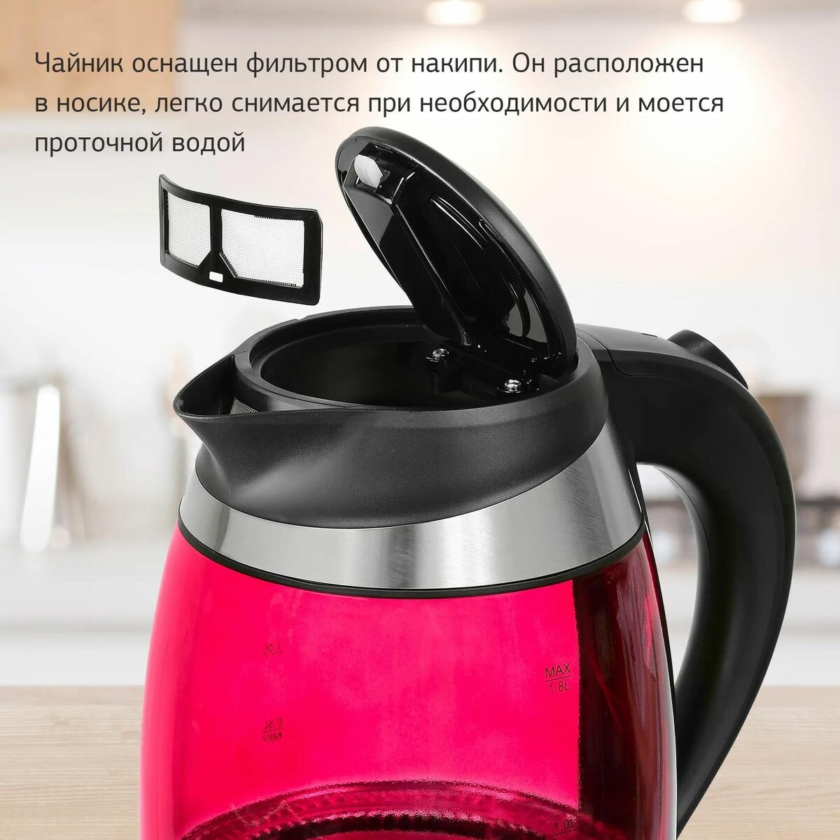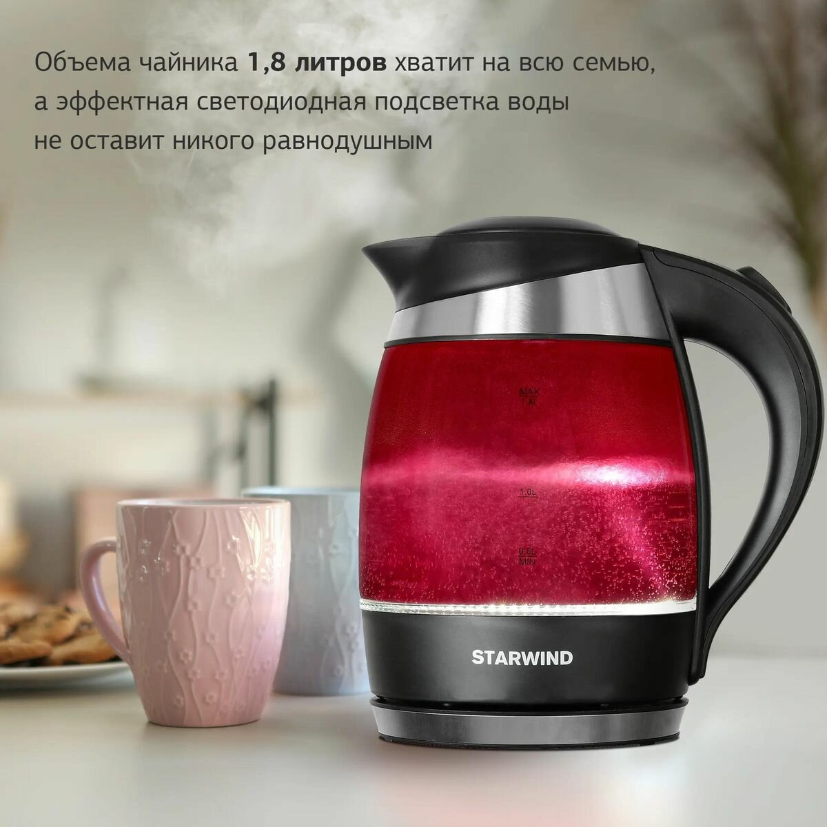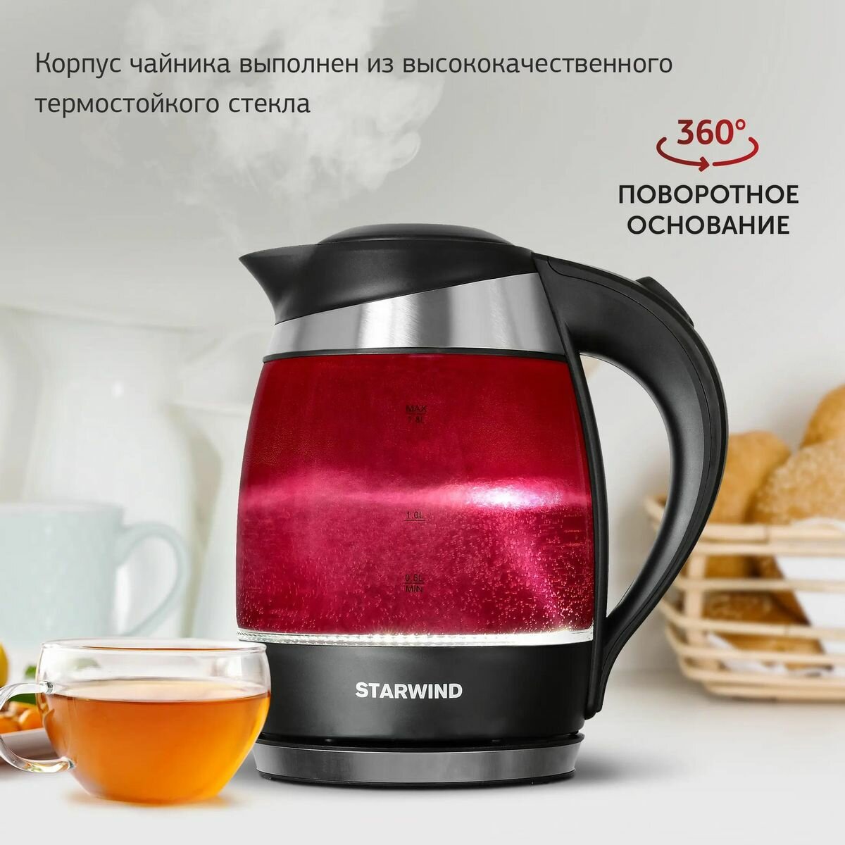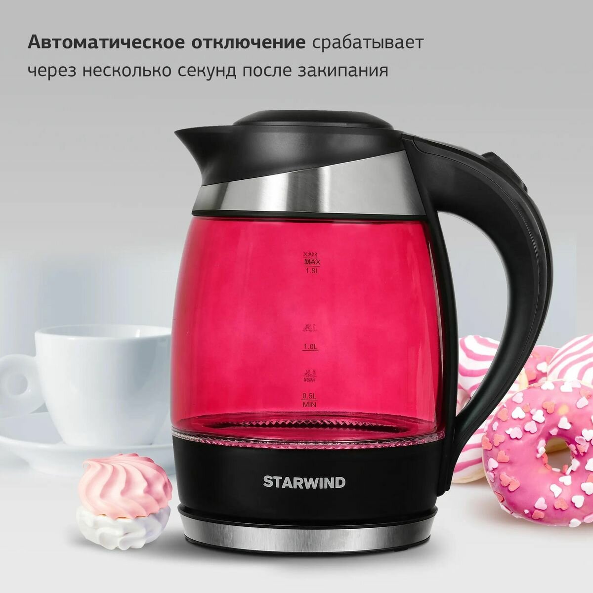 Чайник электрический Starwind SKG2214 малиновый, стекло/пластик