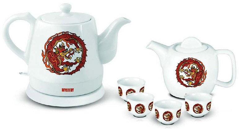 Чайный набор Mystery MEK-1624 1.2л. 1500Вт белый (корпус: керамика)
